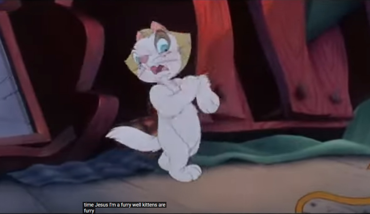 >I'm a furryThis scene in this movie I saw when I was like 4 years old turned me into a furfaggot. I have a fursona, go to cons, have a "mate" and have a $1500 professionally made fursuit of my cat character.The kid literally says "I'm a furry" after looking in the mirror.What movies affected you in weird ways as a child?Movie is rock a doodle