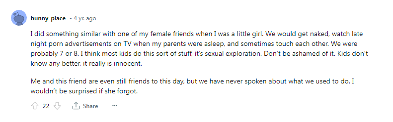 >>152332104female anon here. uggh, this reminds me of stuff i did with my cousin as a kid i really wish i didn't do.