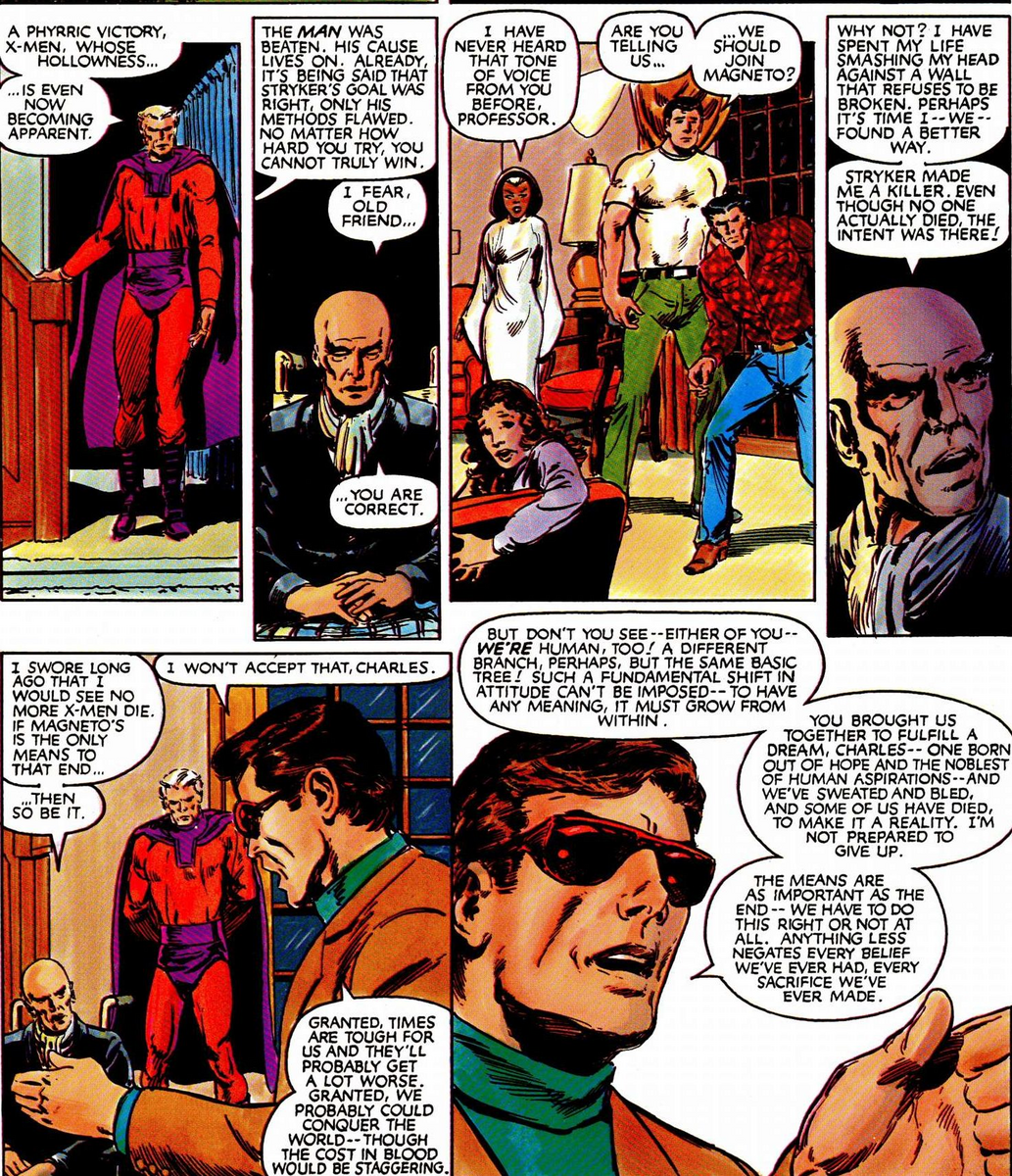 >>152333336>>152333363Comparing old vs new is insane. Remember when they were superheroes instead of villains with a persecution complex? All the writing from the last 20 odd years has done is legitimise people like Senator Kelly. Xmen and mutants in general are now justbsupremacist genocidal maniacs. From Genosha to house of M to Terra Verde to Krakoa, they will destroy everyone else on the planet and claim to be the victims.