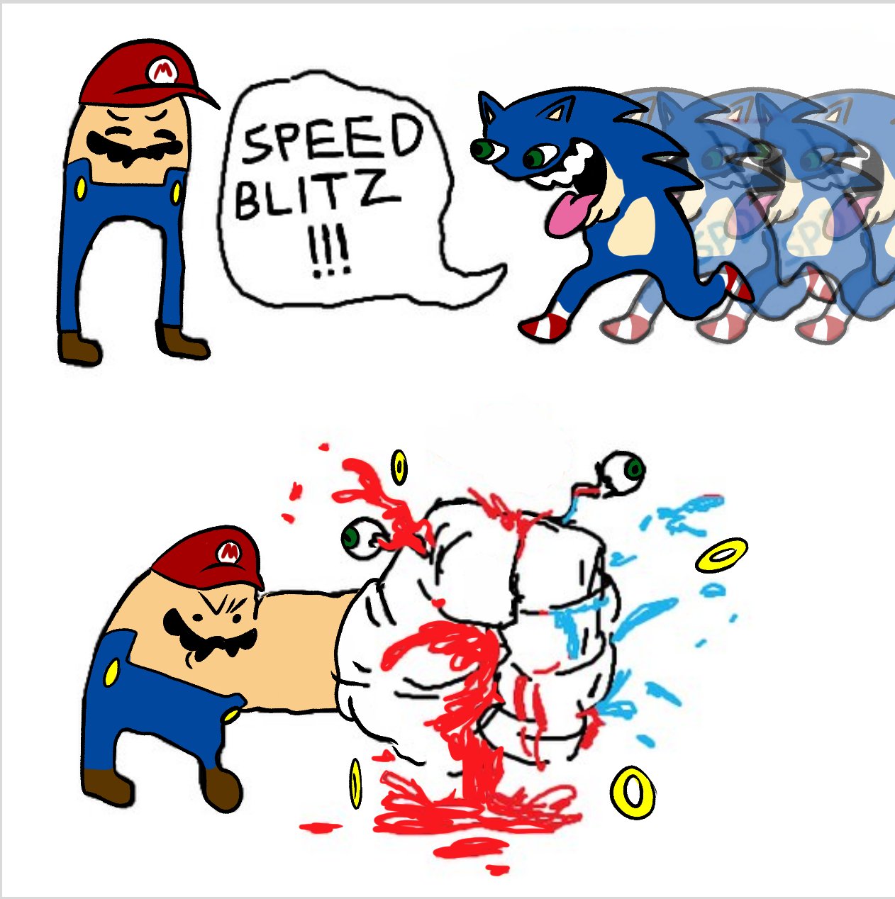 >Sonic needs to hide behind Exe the Pedo now.Mario destroys them both twice as hard.