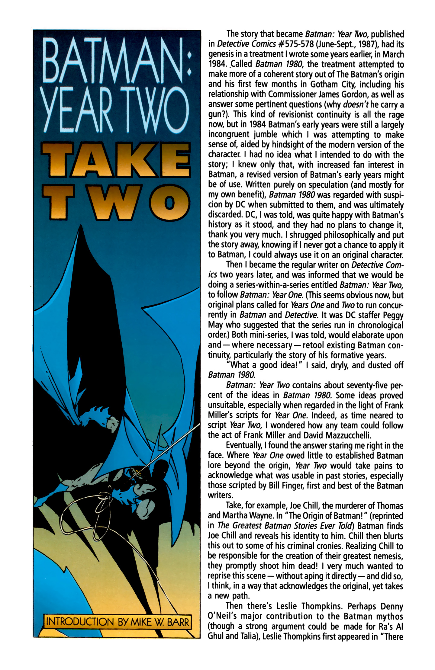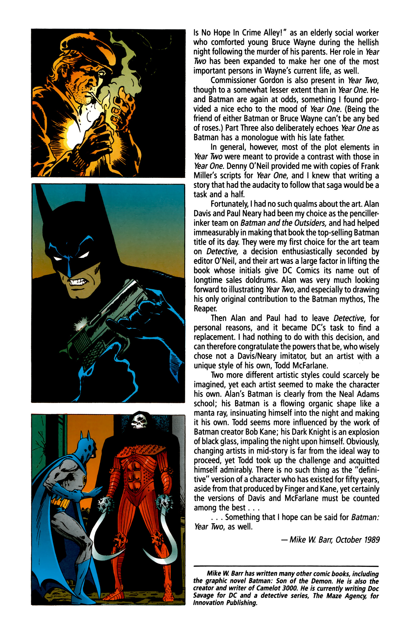 And to finish up, here's a little something from a trade paperback that Mike Barr wrote, explaining the history of this story arc.