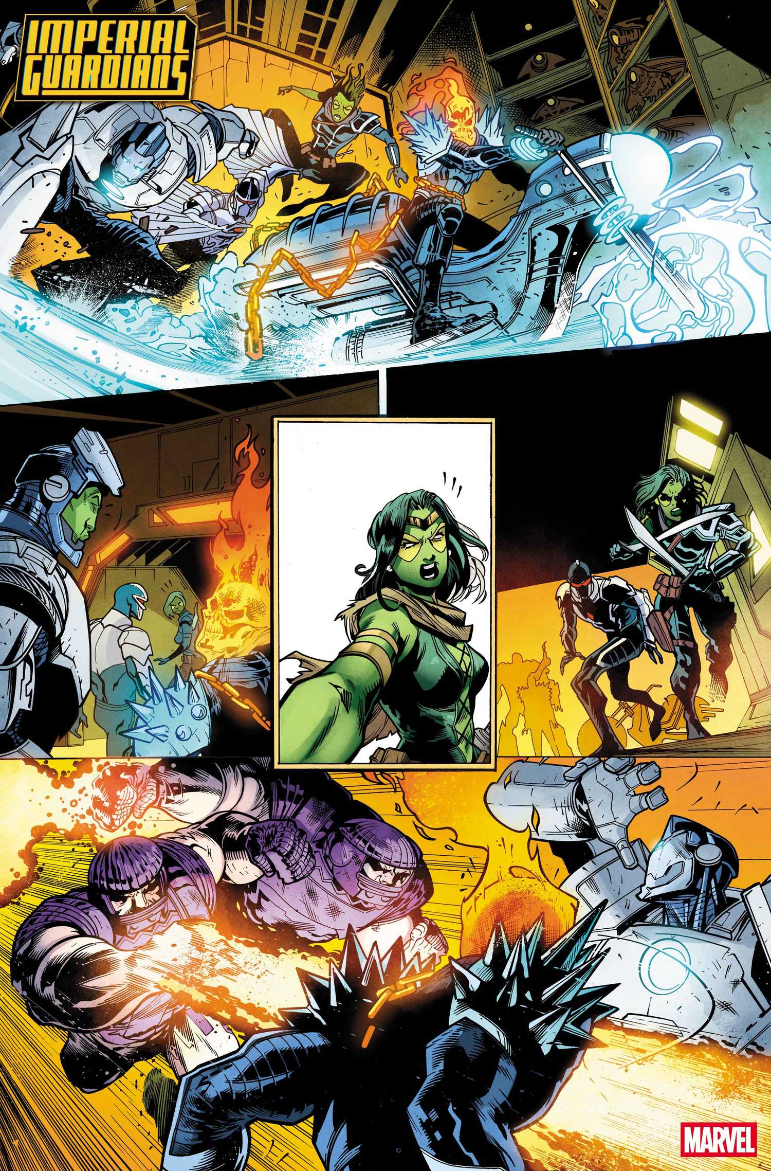 >>152394106https://www.cbr.com/gamora-imperial-guardians-exclusive-interview-preview/IMPERIAL GUARDIANS #3 (OF 5)Written by Dan AbnettArt by Marcelo FerreiraCover by Sean IzaakseVariant Cover by Lelio BonaccorsoA Kymellian mathematician has just developed the ultimate decryption algorithm – but for reasons of Galactic Union security, that CAN’T be allowed to happen. Time for MAXIMUS of the Inhumans to send in his Imperial Guardians – GAMORA, CAPTAIN MARVEL, AMADEUS CHO, DARKHAWK and COSMIC GHOST RIDER – for a little cleanup operation. Trouble is, the Shi’ar Empire want the algorithm too, and they’ve tasked their Superguardians to retrieve it. Are things going to go well? You do the math.