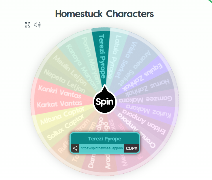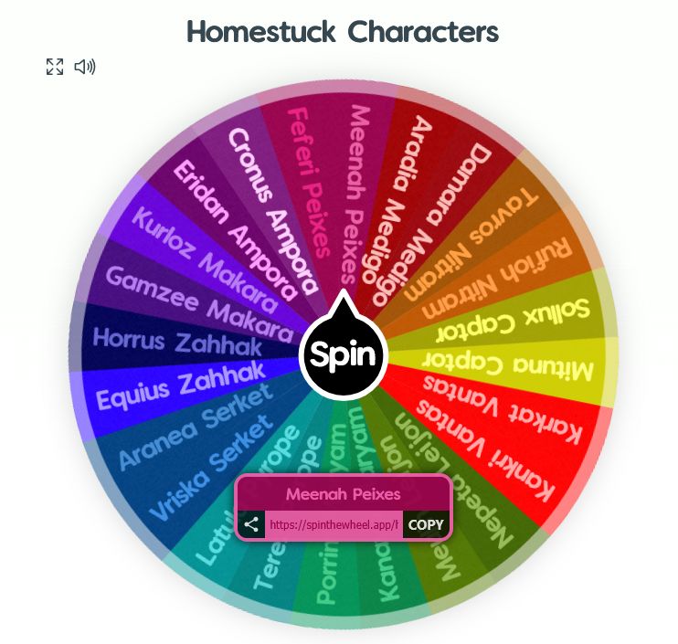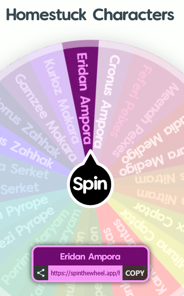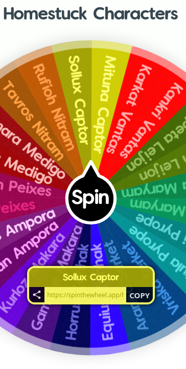 Qott: Could you truly live with a moirail from this wheel? (Yes I know this is getting stale but this will be the last from me) https://spinthewheel.app/homestuck-characters