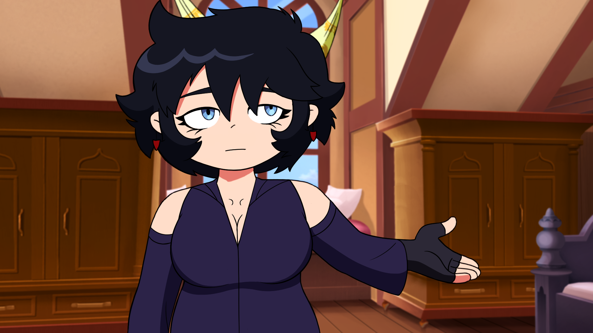 >>152469476Exposed shoulders looks fucking hot here. Humbly requesting you make the boobs bigger and show more cleavage.