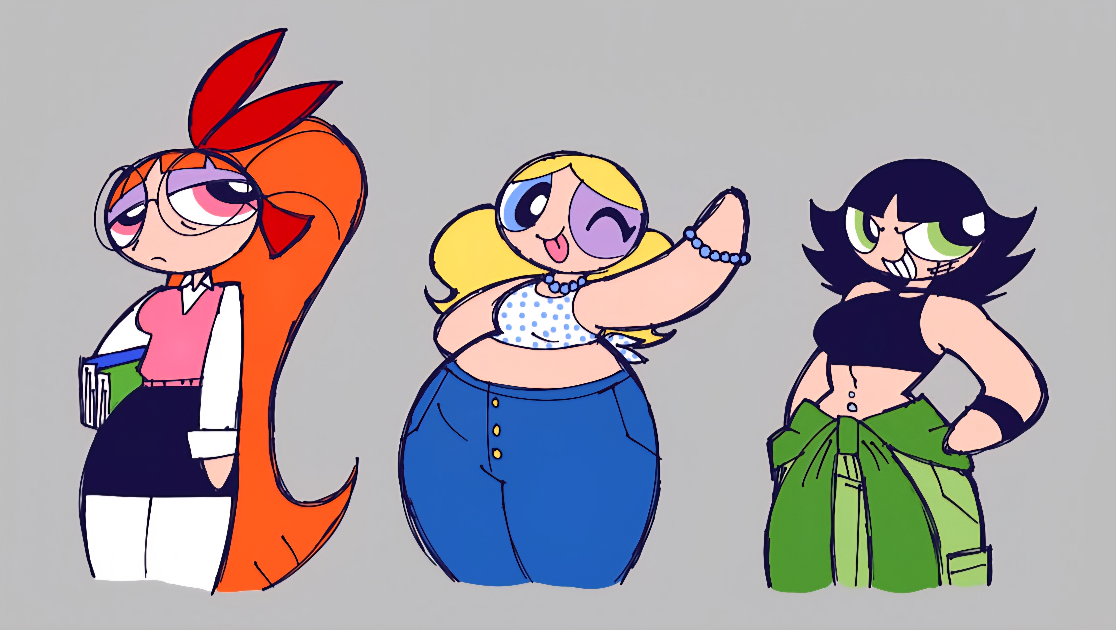 >>152477497With how high her shoulders are I can't stop seeing her as just using her super breath to suck her gut in as hard as she can to hide how fat she's gotten.Like any moment she'll get tired of holding it and everything in >>152449275 is going to release back out plus more we didn't even know about.Then Blossom and Buttercup say "Oh thank god it wasn't just us" and both exhale revealing how fat they've gotten as well