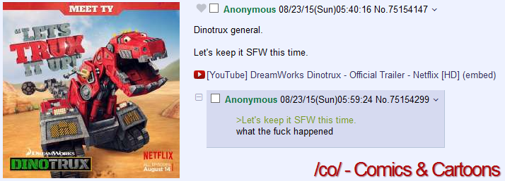 >/pol/>Awful moderation >Almost teen years without entertaining comics and cartoons The /co/ killers.
