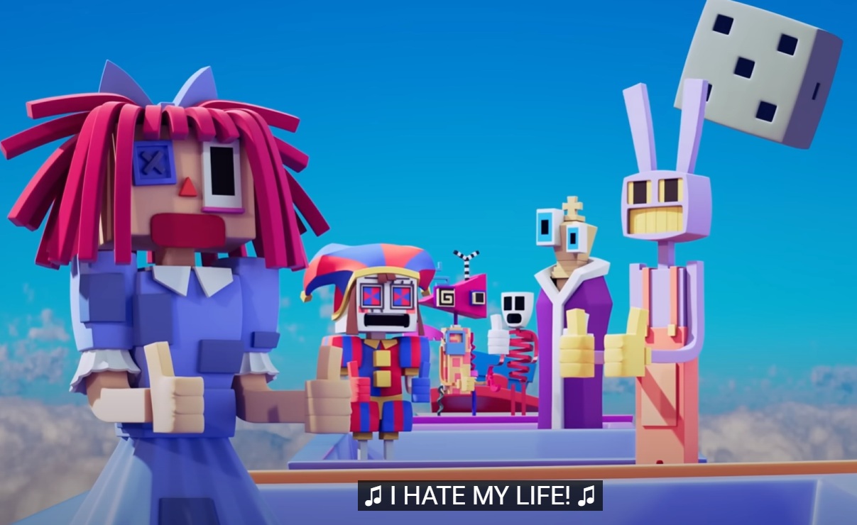 This official content showed Caine forcing characters to sing against their will, showing his mind control