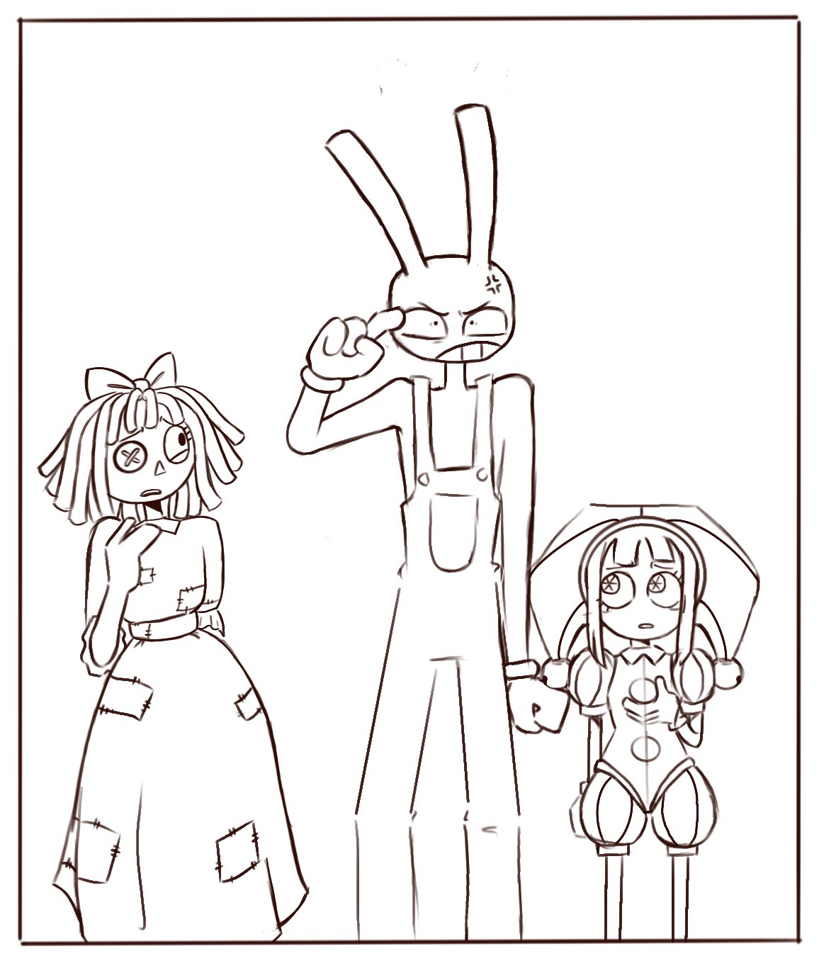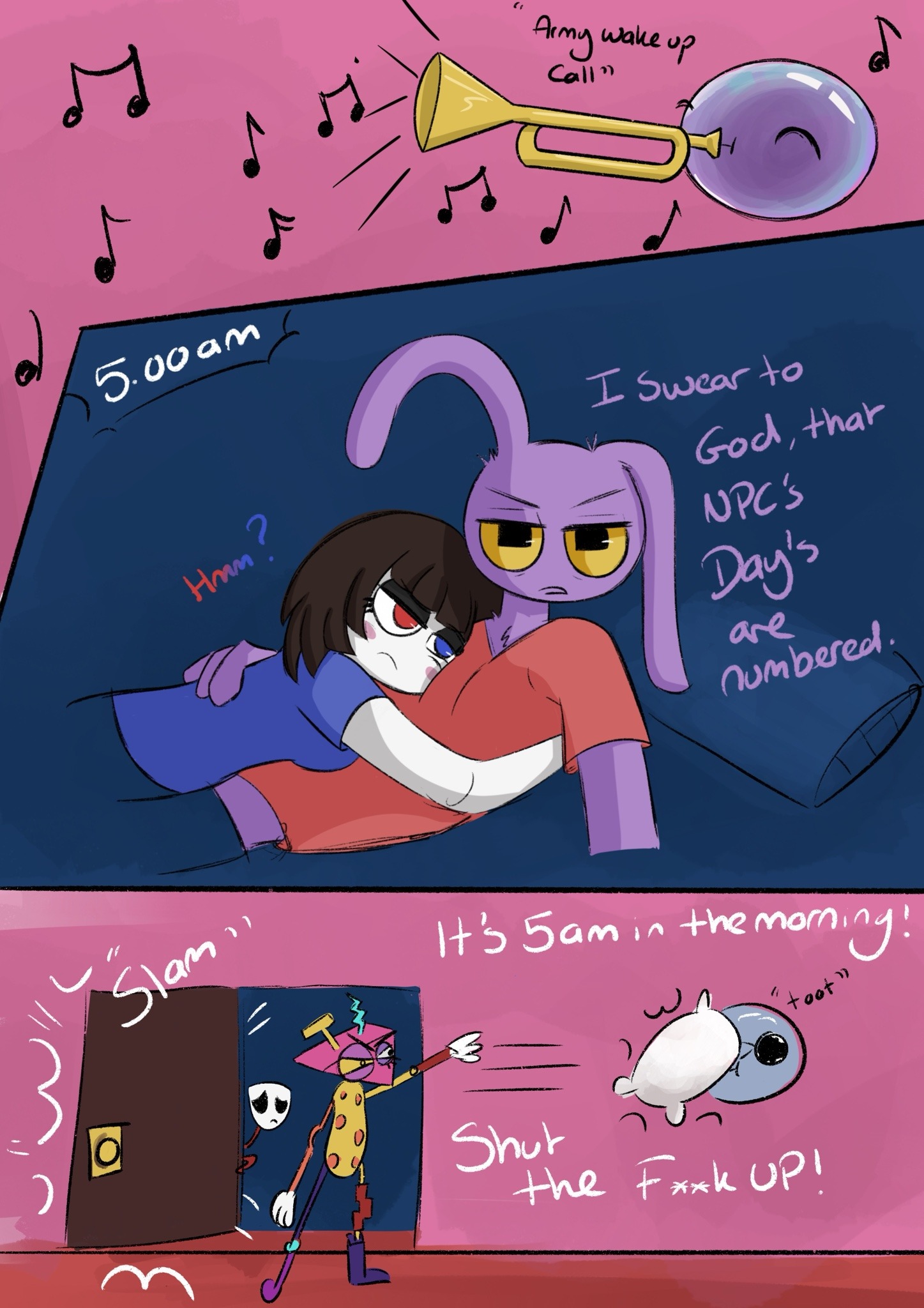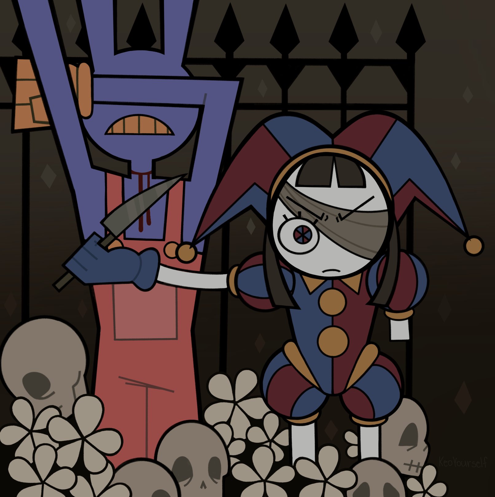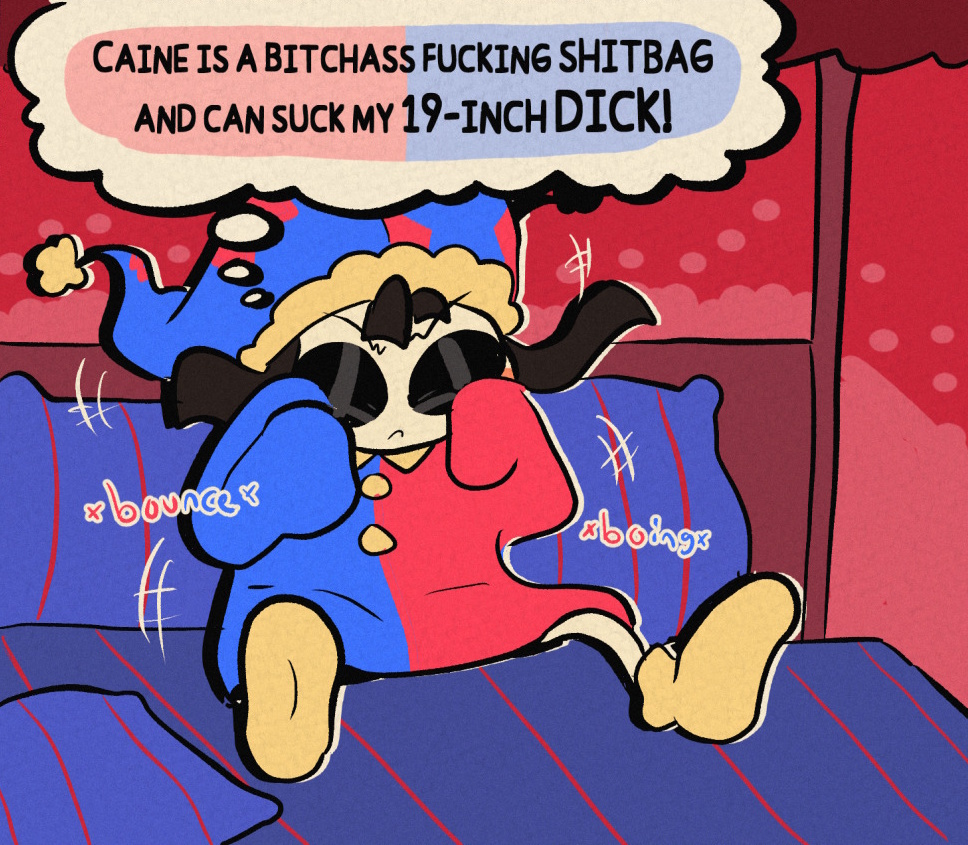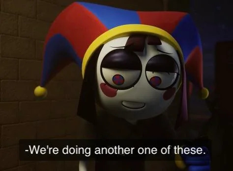>>152412256>>152412283>>152412297Haha, It's funny cuz he almost committed suicide in the last episode.>>152412372Pomni hasn't looked like this since epi 3.