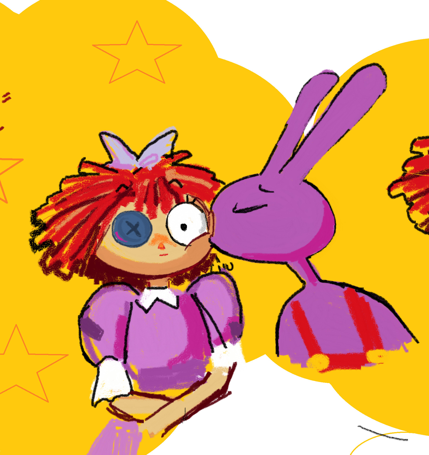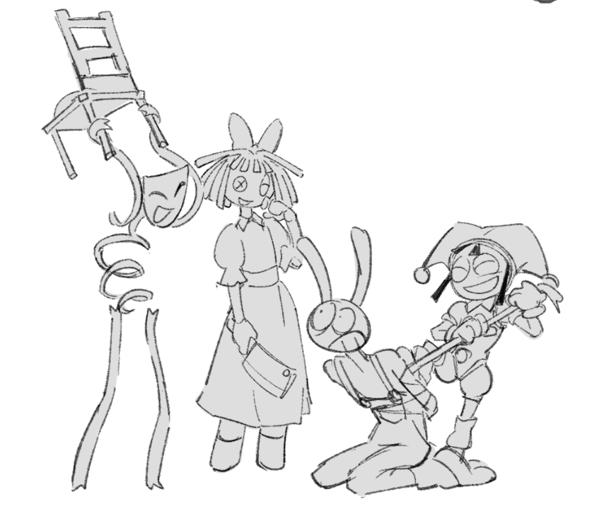 >>152426445I see them more as the jackass of the circus, constantly doing random things and trying to break any adventure they were sent to, fucking with the npcs or the physics engine and between themselves.Jax probably was just a less asshole version of himself, as he was kept in check by Ribbit and Kaufmo, as well as him not carrying the built of their abstractions