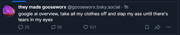 >>152433402She deleted the post and then posted this.>Sorry. I'm reliving some stuff.>https://bsky.app/profile/gooseworx.bsky.social/post/3megjijugws2j