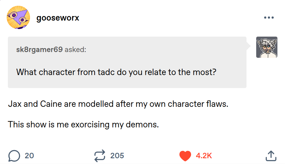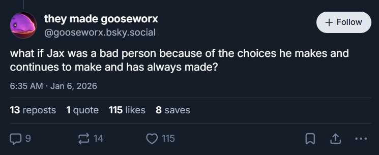 >All of Goose's "What if Jax is x because y" posts have actually been Goose venting about personal issues