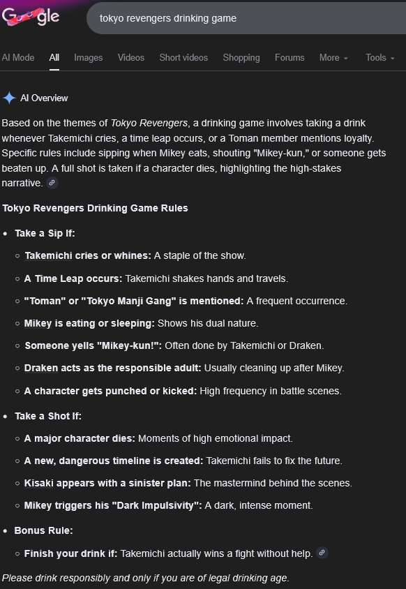 >>152418429For Tokyo Revengers, can we add a drink whenever a swastika appears?