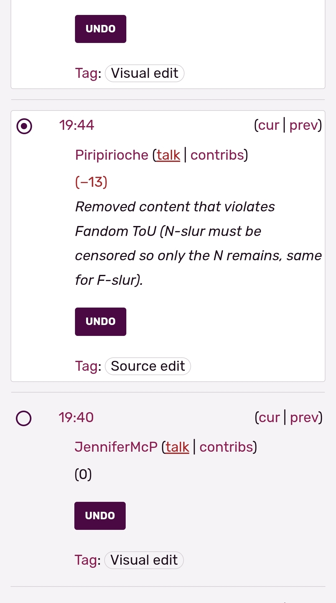 >>152425000>Piripirioche (Helper)No fucking wonder it's a jannie being a little brownoser, cause god forbid a wiki with like a couple active contributors has a dreaded nigger-word somwhere.