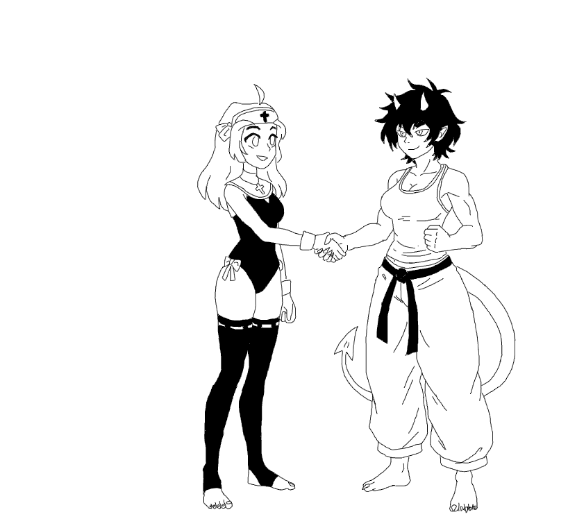 A /co/ project about a female fighting tournament hosted in Hell where demons of different tribes and organizations compete for pride. Two nuns named Maria and Joan have entered Pandemonium to become champions and prove spirituality is superior to material hedonism represented by Hell's contract business.