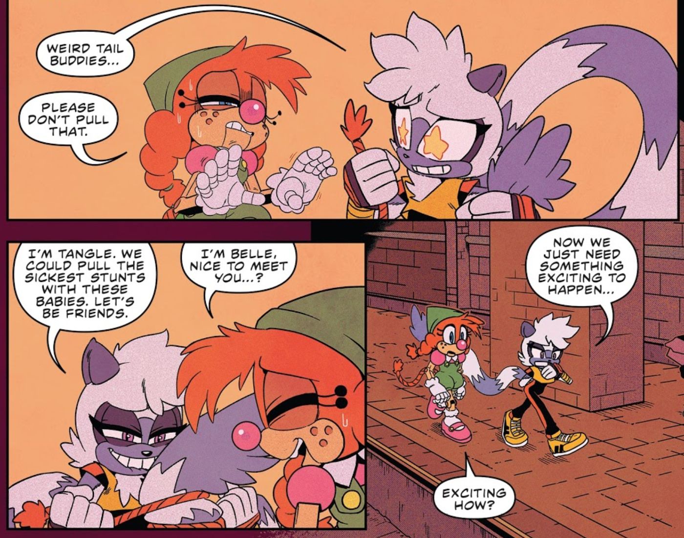 >>152447939Sonic characters are supposed to be simple. Whisper and Surge having a Coldsteel-like edgy backstory just screams fanfiction. Tangle being a simple girl was part of her charm, and reflects how IDW was supposed to be game accurate at the start. It was more like they paired her up with Whisper once the writers stopped giving a fuck about being like the games and wanted to be Archie’s spiritual successor.