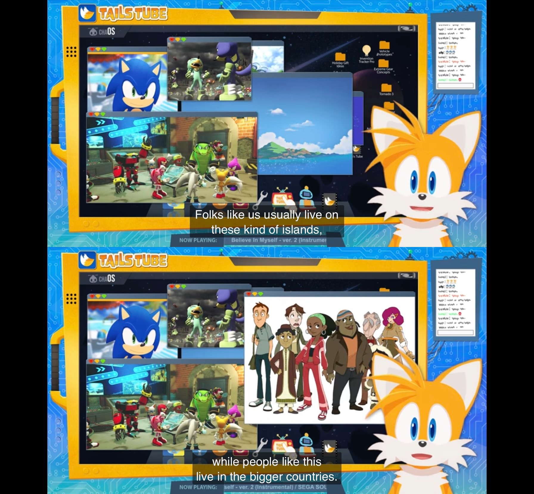 >>152451871It was in TailsTube. Humans live in big countries, the animal people live on islands. Though sometimes they co-exist like Amy living in Station Square during Sonic Adventure.Having two separate worlds was always a retarded and lazy idea.