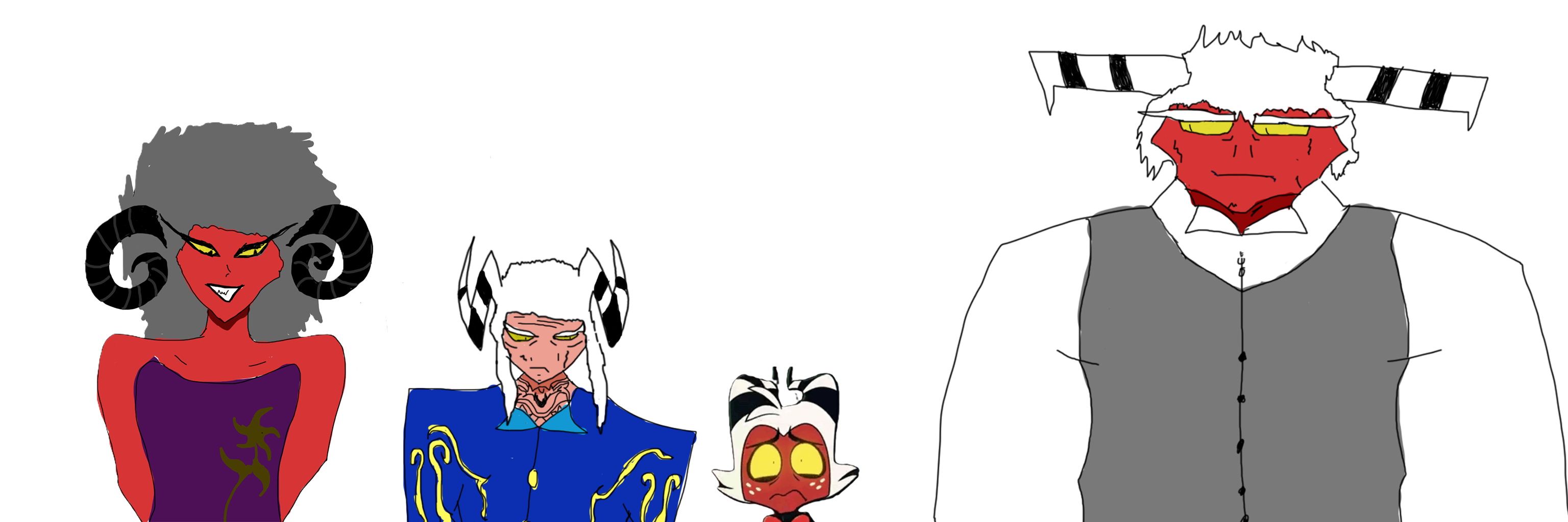 Made some arts of Moxxie's family in my AU and made this. Small size comparison to show they all compare. Moxxie is quite a runt.