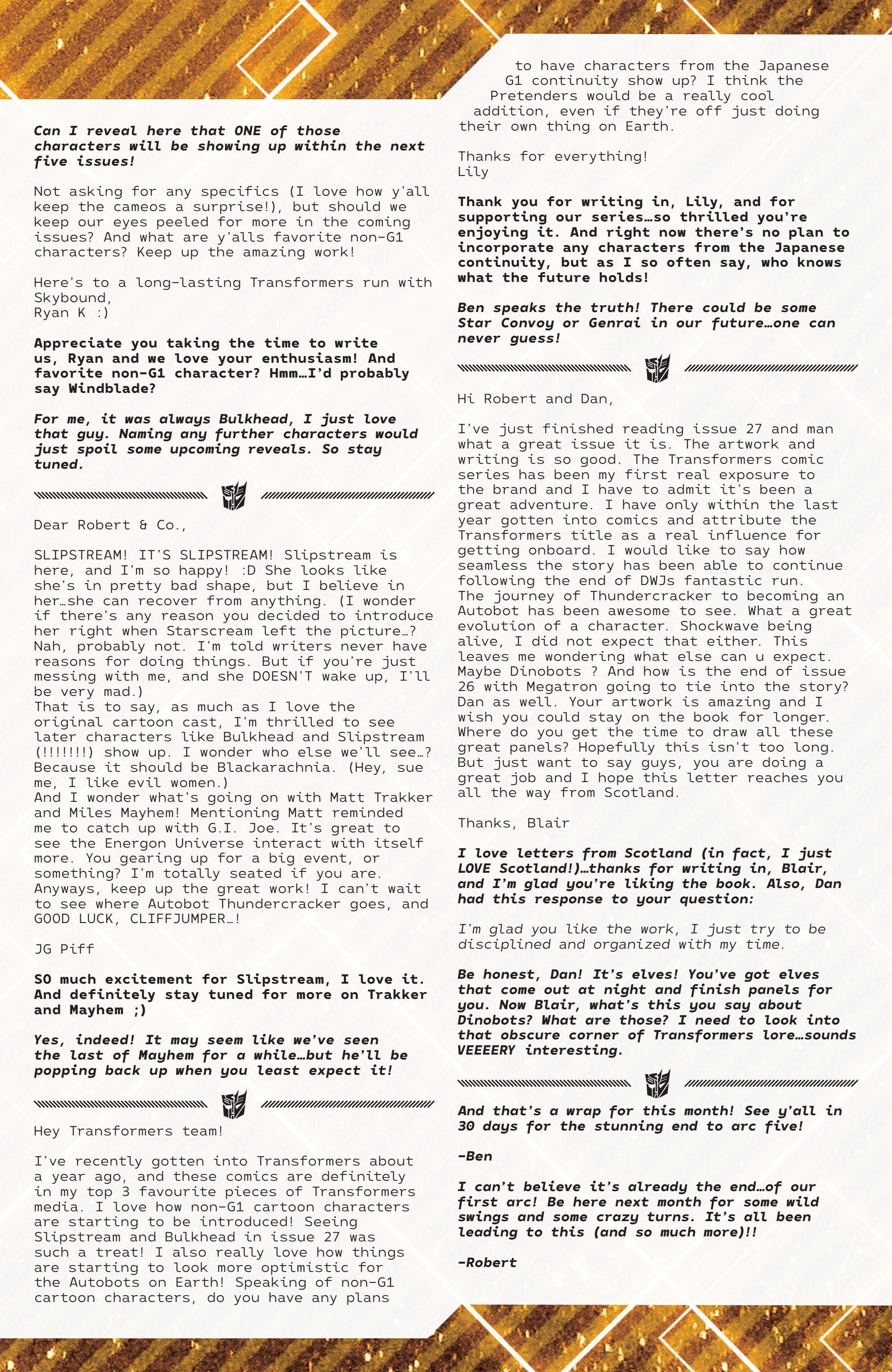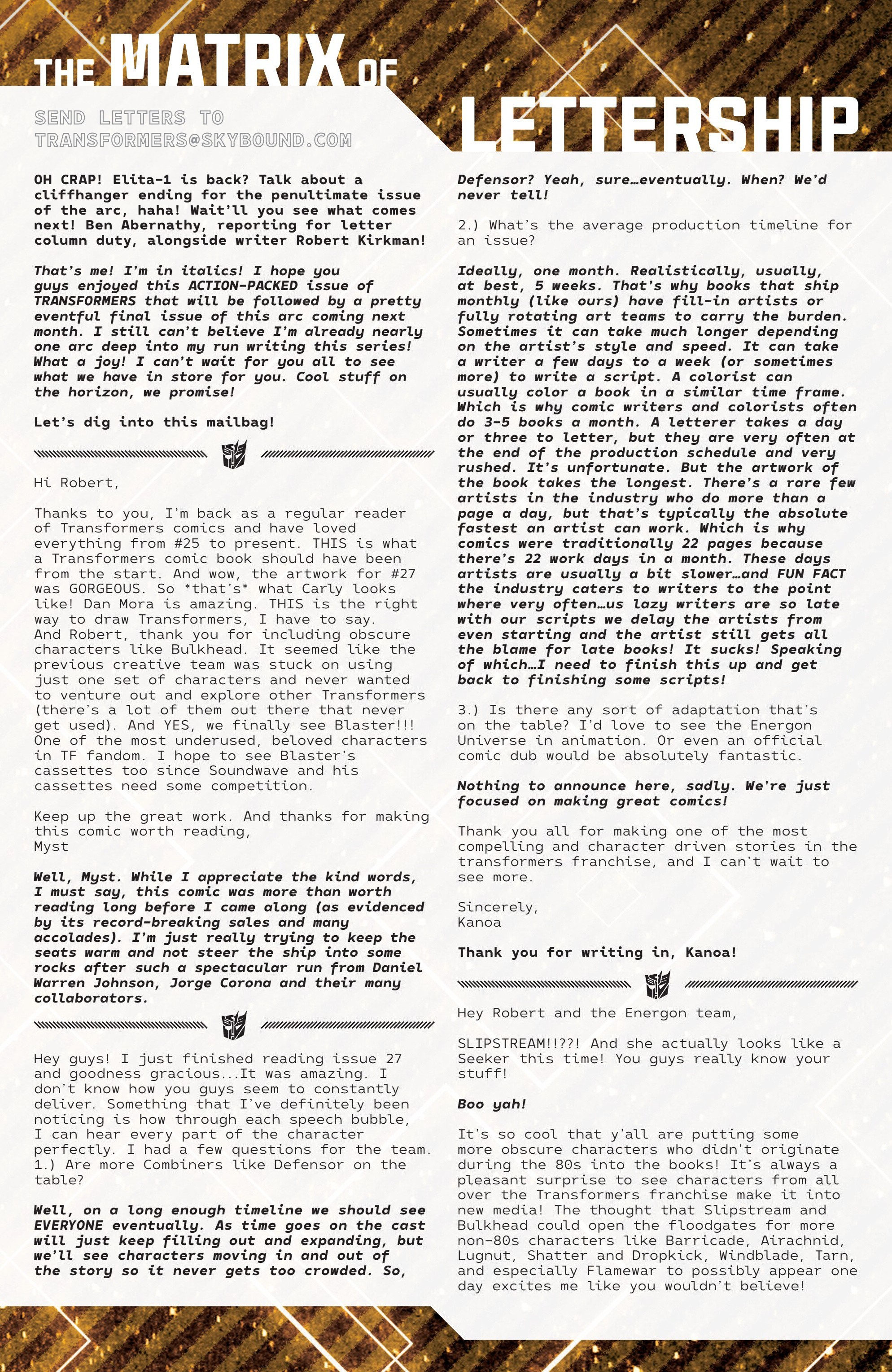Letters, and guess what?Kirkman is a windblade chadAnd i hope she replaces Elita 1 as IDW did and calls her a bitch