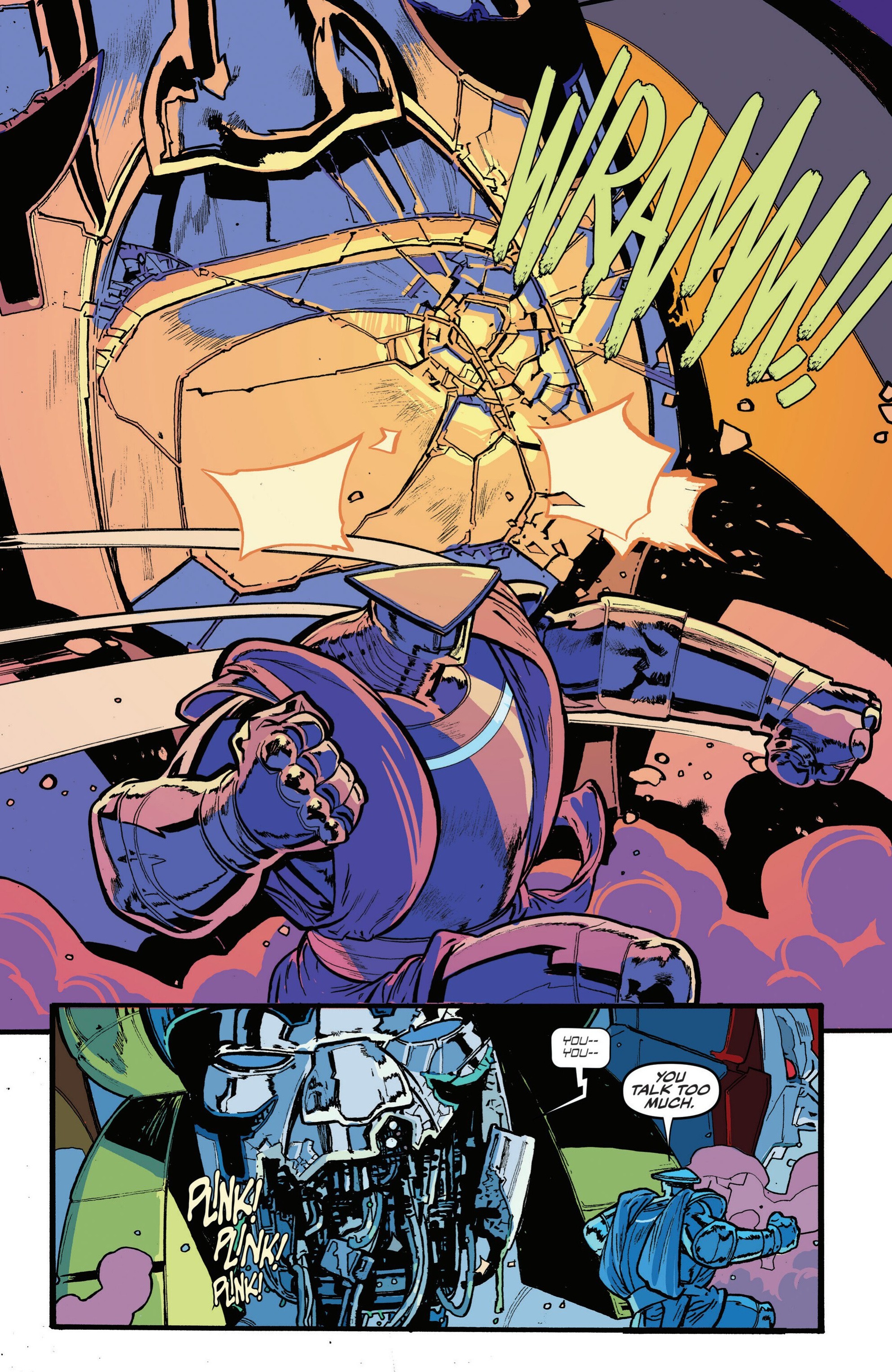 >>152457469>Middle panelThis is my running gag now,I hope it keeps happening,gotta love onslaught giving him the pimp slap tooGotta love bulkhead turning bruticus into chris benoit for whole fight>>152457550Poor frenzy,shit is so insane they made him a straight man,shredhead looks like batman and ravage looks like a worried dog sniffing at a corpse and devastator runs like hes about to shit his pants,cliffjumper is back too early,expected him to do penal scout duty till prime tows him back to earthGood issue but pacing of the arc is shit,I know its a cool down arc and all but still,shitload of setup in 1st part of the arcI wonder if kirkman is only to issue 31 or more towards 35/40I hope optimus shoves his whole arm down elitas ass and turns her inside out into black arachnia