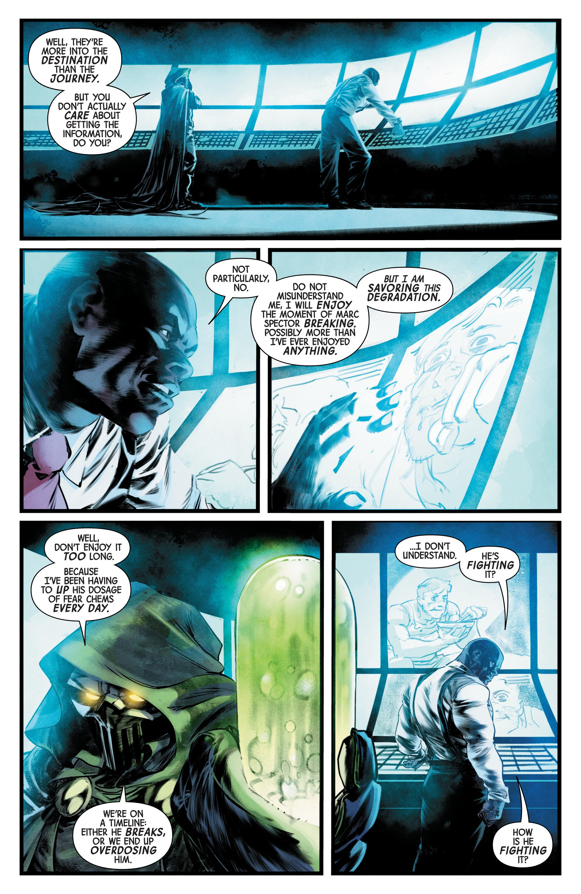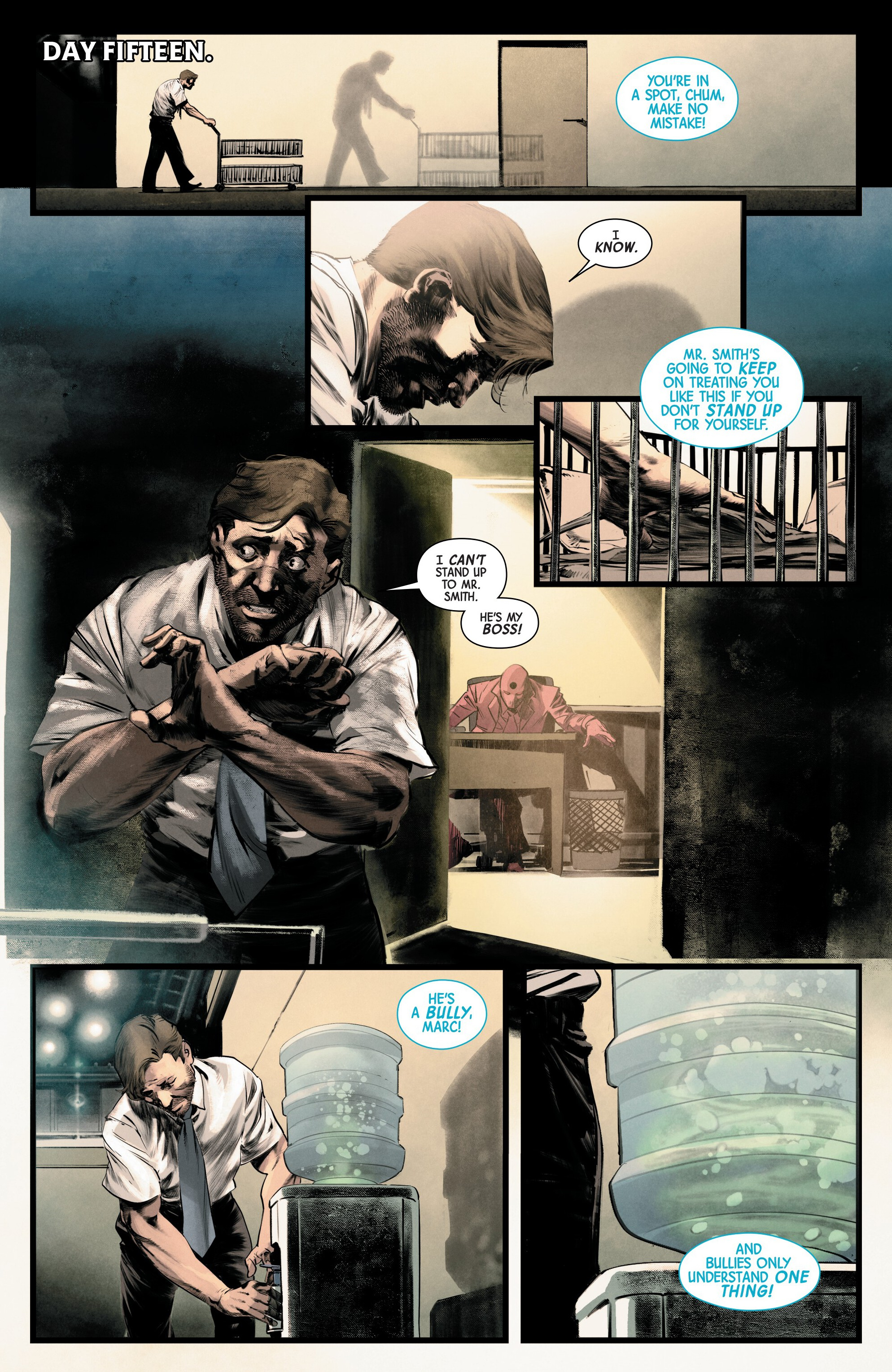 From that bit of knowledge, this #1 seemed really cool. You see the buildup, you see the mental aspect at play, you get the promise of some fights in the next issue, I think it's well done. The mystery aspect is compromised from me only knowing the bits the comic shares and what people have said here, but it does make me wanna know what the deal is and how Marc got into this situation in the first place.