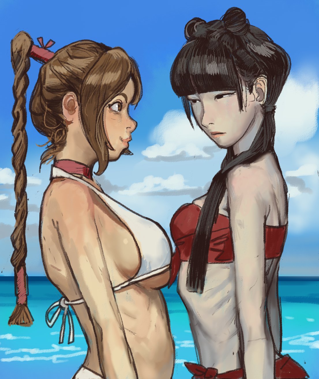>>152578409>Going by The Beach, Azula has the smallest tits of the group IIRCThe Beach is very inconsistent, Azula and Mai go from being flat as boards to actually having some size, and whichever one is bigger depends on the scene. Azula tends to be bigger than Mai, but you can easily find a scene where the opposite is the case. Heck, this shot suggests Mai is the biggest and Ty Lee the smallest, which we know is not true.