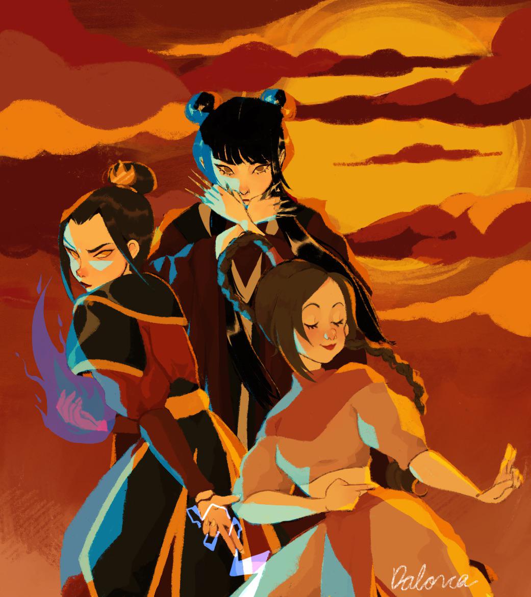 >>152484651I always imagined that Azula was the youngest of the trio, leading to Mai and Ty Lee having to awkwardly "older sister" her, since Ursa wasn't teaching Azula anything even before she left.>Ty Lee playing with young Azula's hair and makeup until landing on her "look">Mai having to explain sex because Ty Lee's explanation is so abstract and flowery it's effectively useless>Azula learns (what passes for) her self-control and social grace by mimicking Mai and Ty Lee respectively
