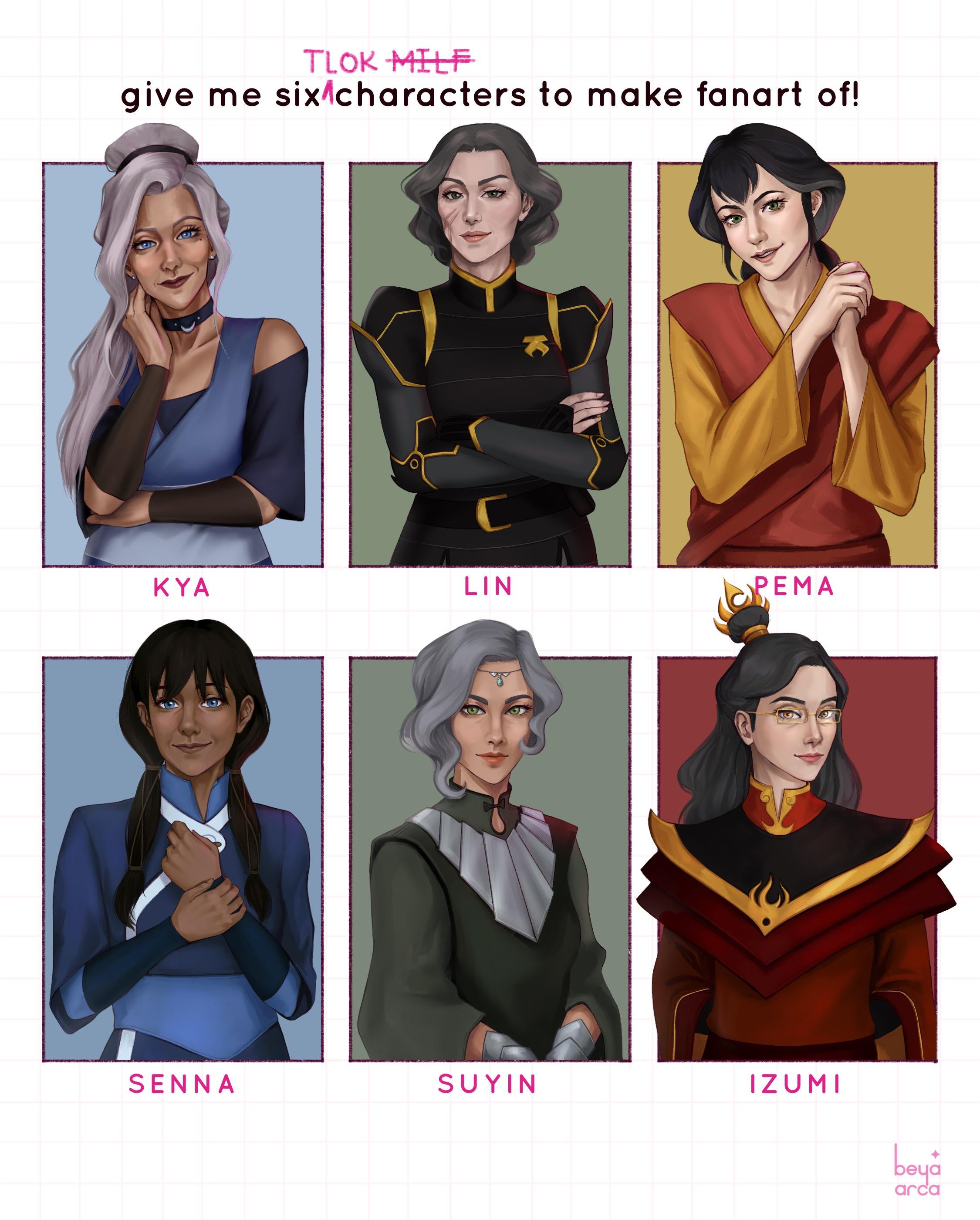 >>152580080Row 1Jin - Shaved (prostitute)Pema - HairySuki - TrimmedAsami - full Brazilian waxDon't know - HairyDon't know - HairyRow 2Senna - HairyDon't know - HairySuu - TrimmedYue - TrimmedP'li - ShavedToph - Peach FuzzRow 3Meng - Naturally hairlessMing-Hua - Hairy Ty Lee - Naturally almost hairless.Don't know - HairyKya - Hairy / Shaved when on the hunt for young lesbiansRow 4Opal - TrimmedJun - HairyEska - ShavedAang cosplayer - waxed (took her role too seriously)Row 5Katara's Mom - HairyZhu Li - WaxedDon't know - HairyKuvira - ShavedAzula - Burned offIkki - Naturally hairlessRow 6Jinora - Peach fuzzMai - ShavedKorra - The hairiest pussy you've ever seen before she started dating Asami. Now she's waxed thoughDon't know - HairyLin - TrimmedKatara - Hairy