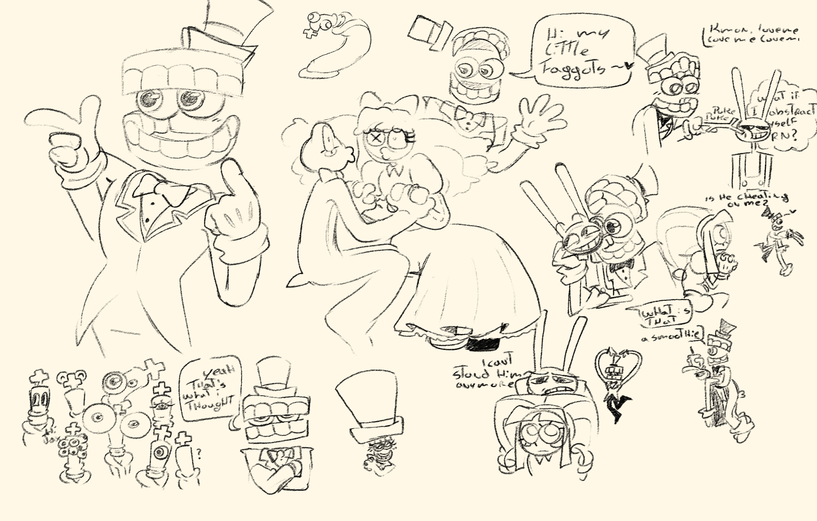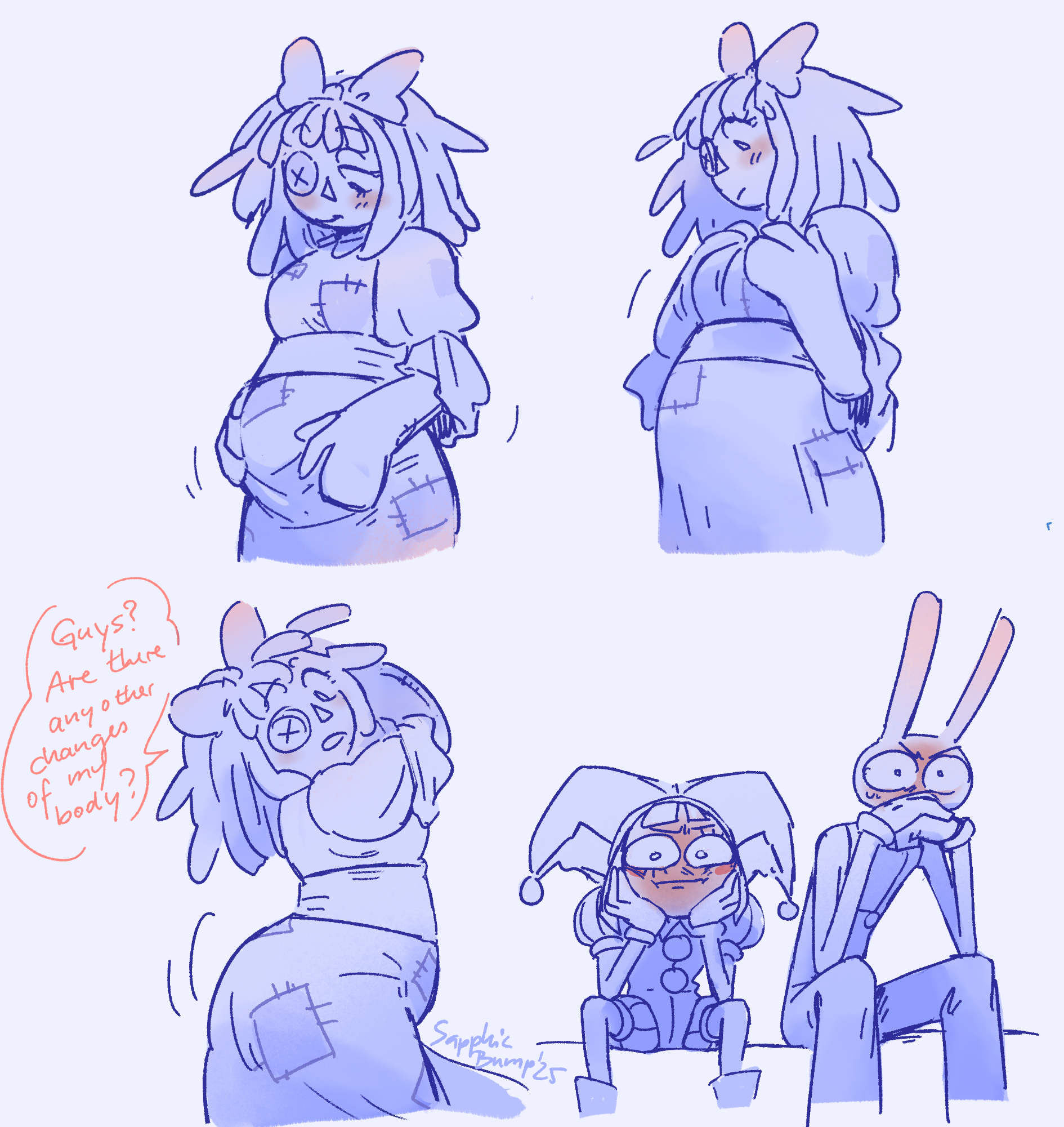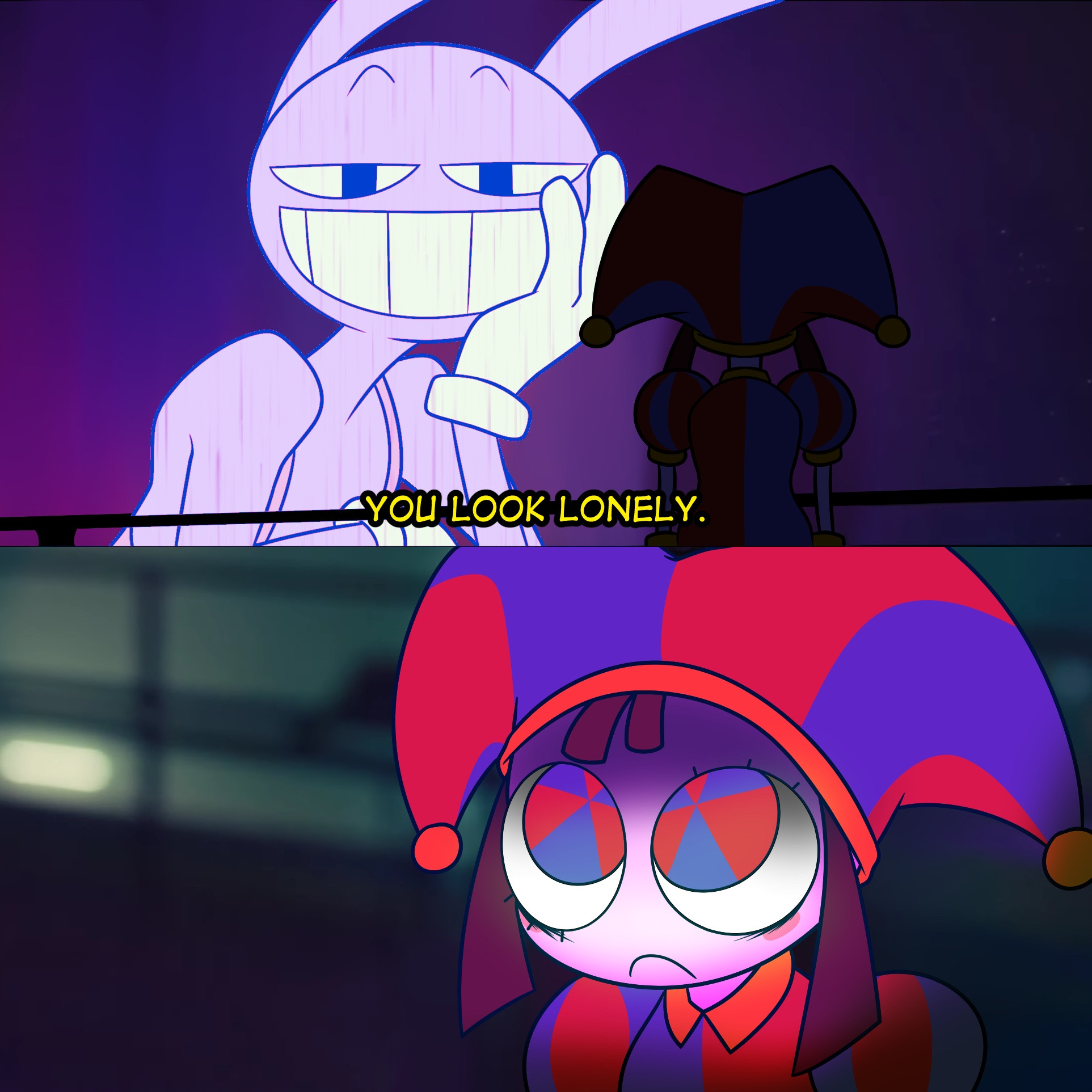 It's actually funny. The very first funnybunny thing I ever read was a comic where Pomni tries asking Jax how to remove their clothes and he fucks her until she almost says she loves him, then he fucks her harder to shut her up (I think there was some implied Bunnydoll too). And I remember thinking back then why someone would draw all that when they had barely interacted at the time.Now I ship them myself like the filthy pig I am.