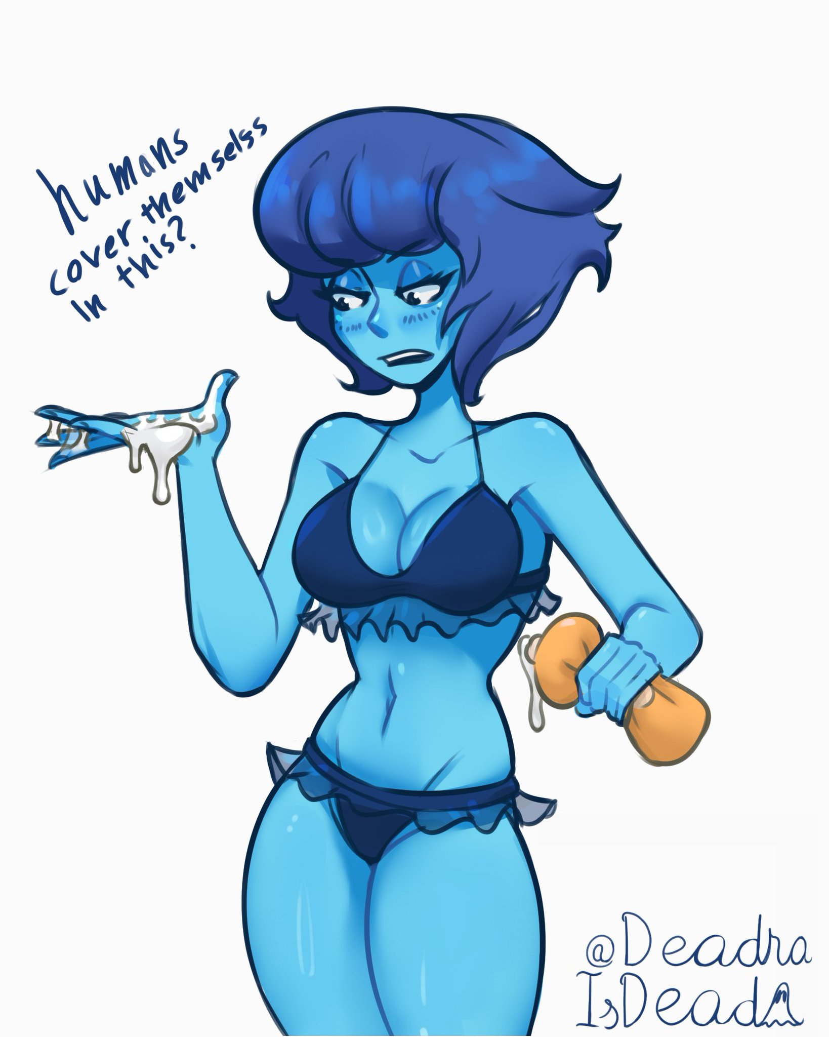 >>152510821i like to think that lapis here is completely oblivious to human standarts and is confused why she has to wear this