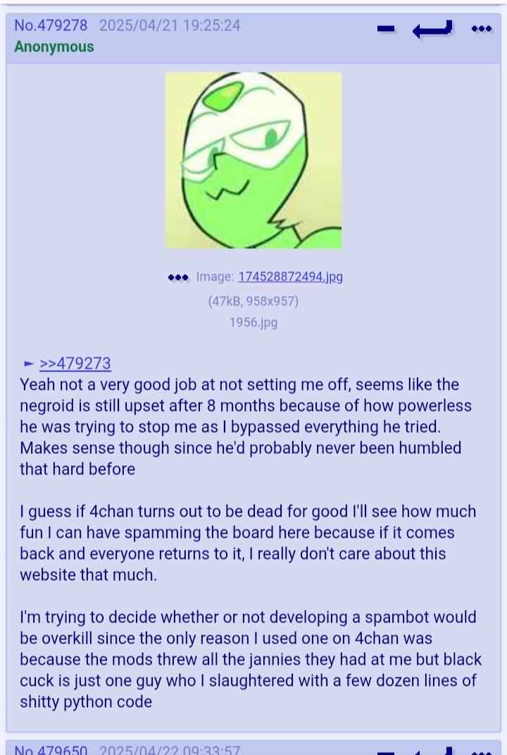 >>152512914Daw, I like you too anon>>152513099I think that anon is just really upset that Peridot won in the end, which posts were yours? Do you have any desu links?