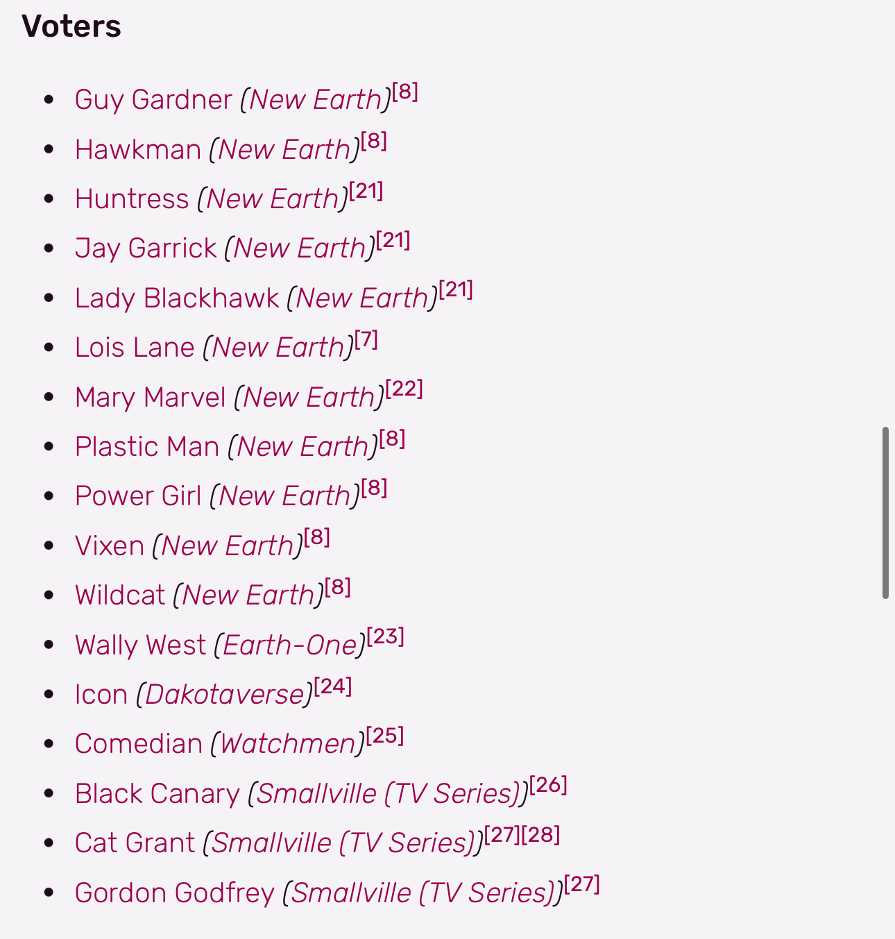 >>152497150Lois >republicanClark>reluctant republican Bruce>Reluctant “fiscally conservative” Democrat Ollie>AOC-retweeting “Democratic Socialist”Hal>hasn’t voted since 92Barry>genuine independent Dick>Democrat Wonder Woman>is she even a citizen? Can’t voteAquaman >Foreign agent, can’t voteMartian Manhunter>cant voteAlan Scott>republican (and straight)
