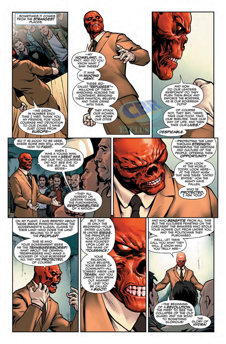 >>152497526Red Skull is saying what people want to hear to get bodies for his cause, this is a run that tried to redeem the image of literal Nazis by making Cap one