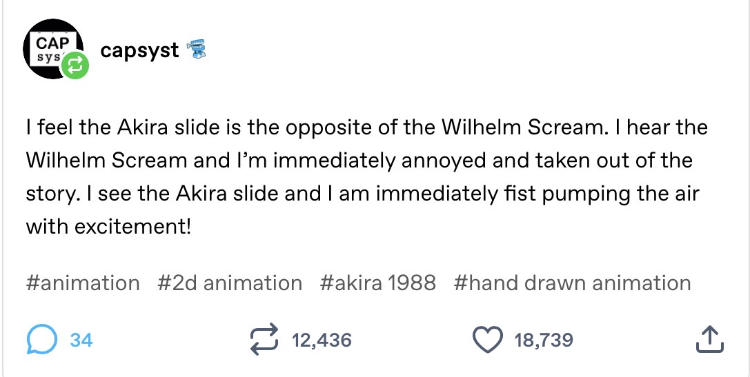 >>152507557The Wilhelm scream is just a silly little jokeBut the akira slide takes effort and thought process and time