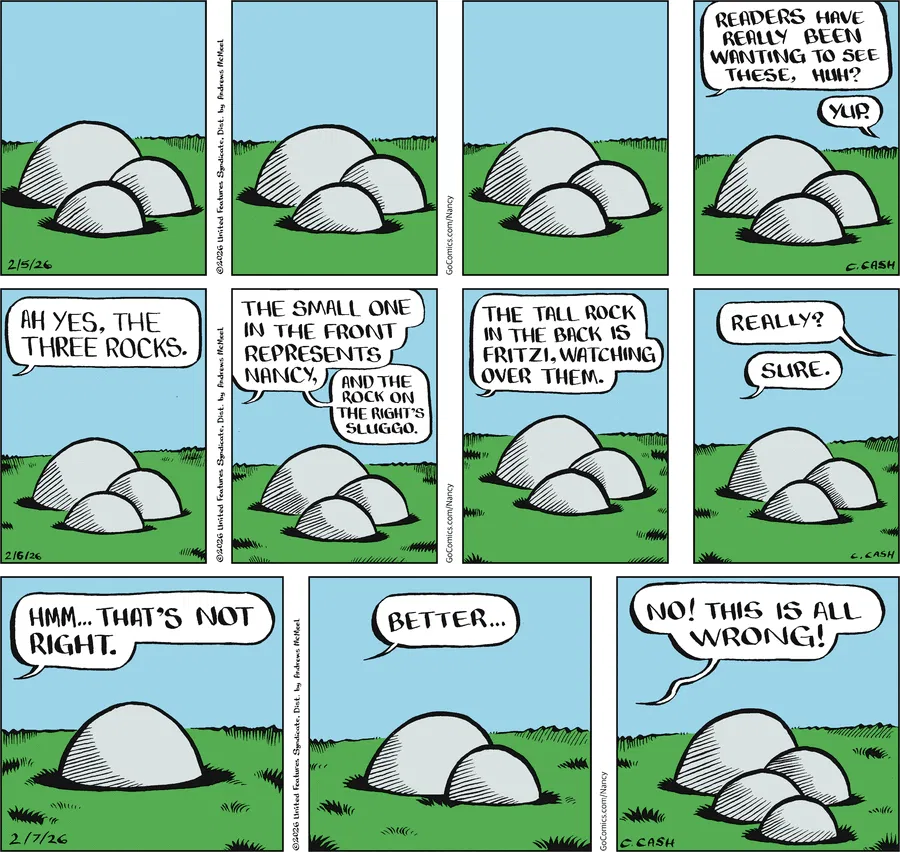 >>152519884Yes.>>152519856There are some moments where the excesses of modernity come across with less grace than when Olivia would integrate them. It's one thing to have a comic where Sluggo says "You can't just assume everyone who disagrees with you is a bot" and we cut to Nancy leering at him suspiciously with a robot Sluggo in a thought bubble, and another thing entirely for her to be upset he's not giving him attention due to being so focused on his smartphone that she airdrops him a selfie. On the other hand, as an comix artist Caroline still has an understanding of what a prominent figure in the pop culture landscape Nancy is, dedicating three days to the famous Three Rocks, so famous that Bill Griffith of Zippy the Pinhead fame used them for the title of his Ernie Bushmiller biography.