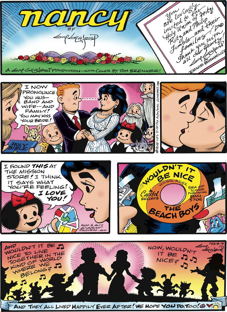 >>152508346This strip is lame, but the rest of her run seems alright so far. Helps that the art is much better than Jaimes'.I'd still take both runs over Gilchrist's. Imagine taking one of the best gag comics from the 30s/40s and turning it into a sappy, wholesome, boomer nostalgia comic. Disgusting.