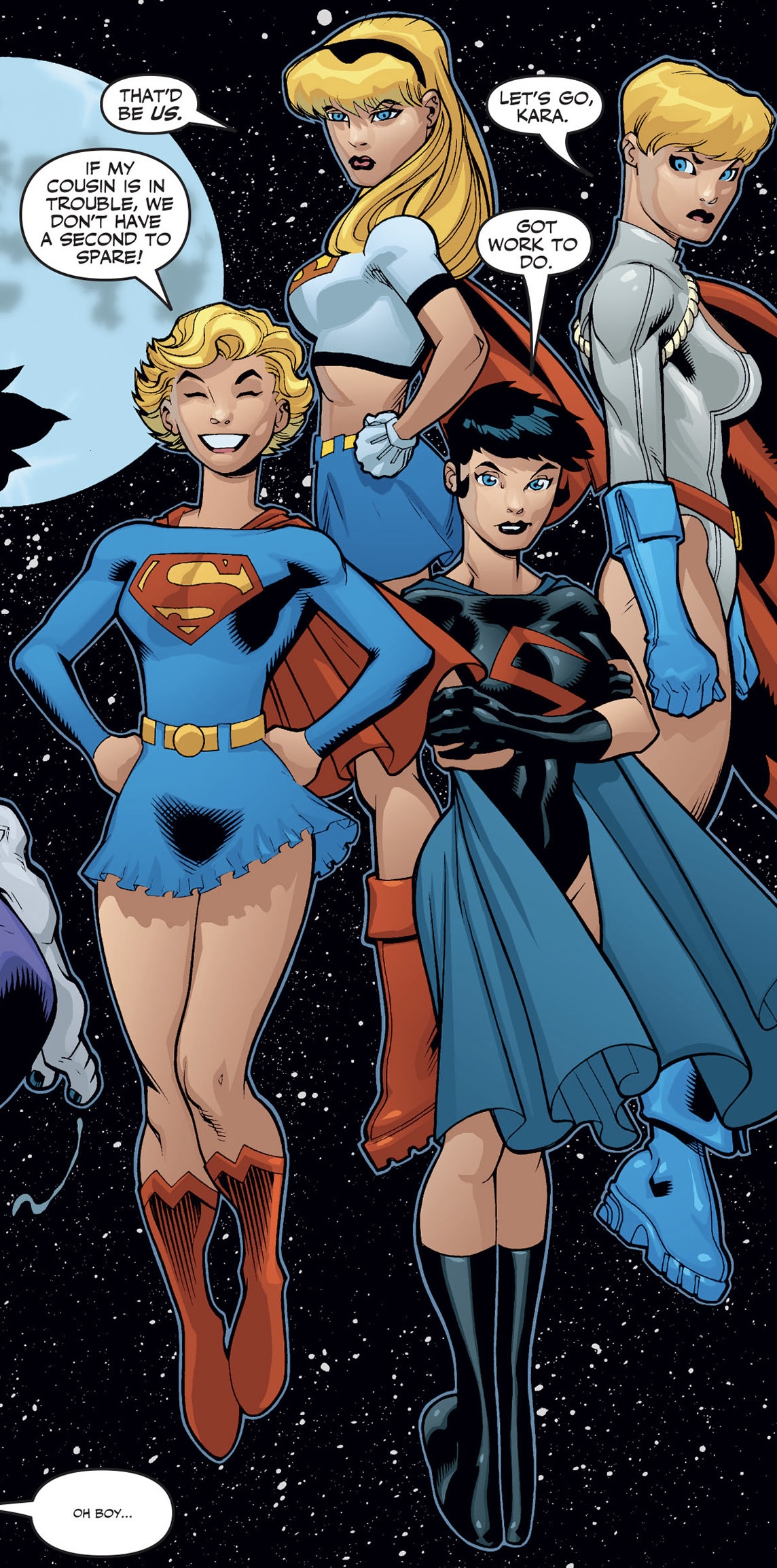 >>152582865>>152585052Adding to this, Kara flashes her panties so often while flying that she decided to ditch the skirt enitrely when she updated her costume