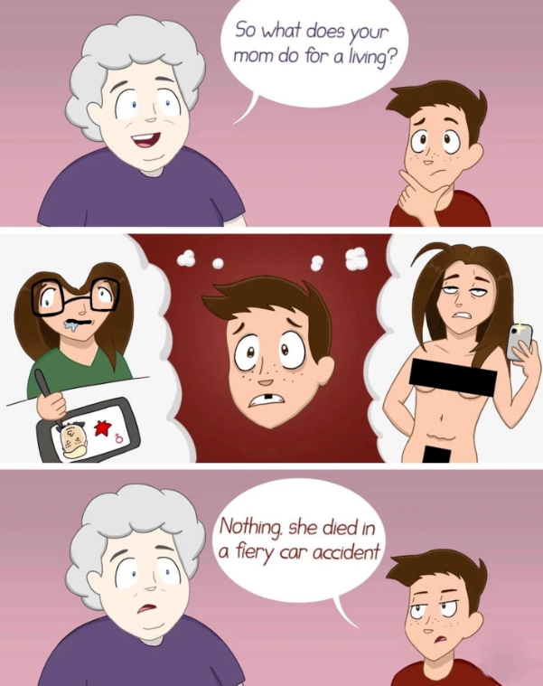 her kids classmates definitely show them her nudes as a joke