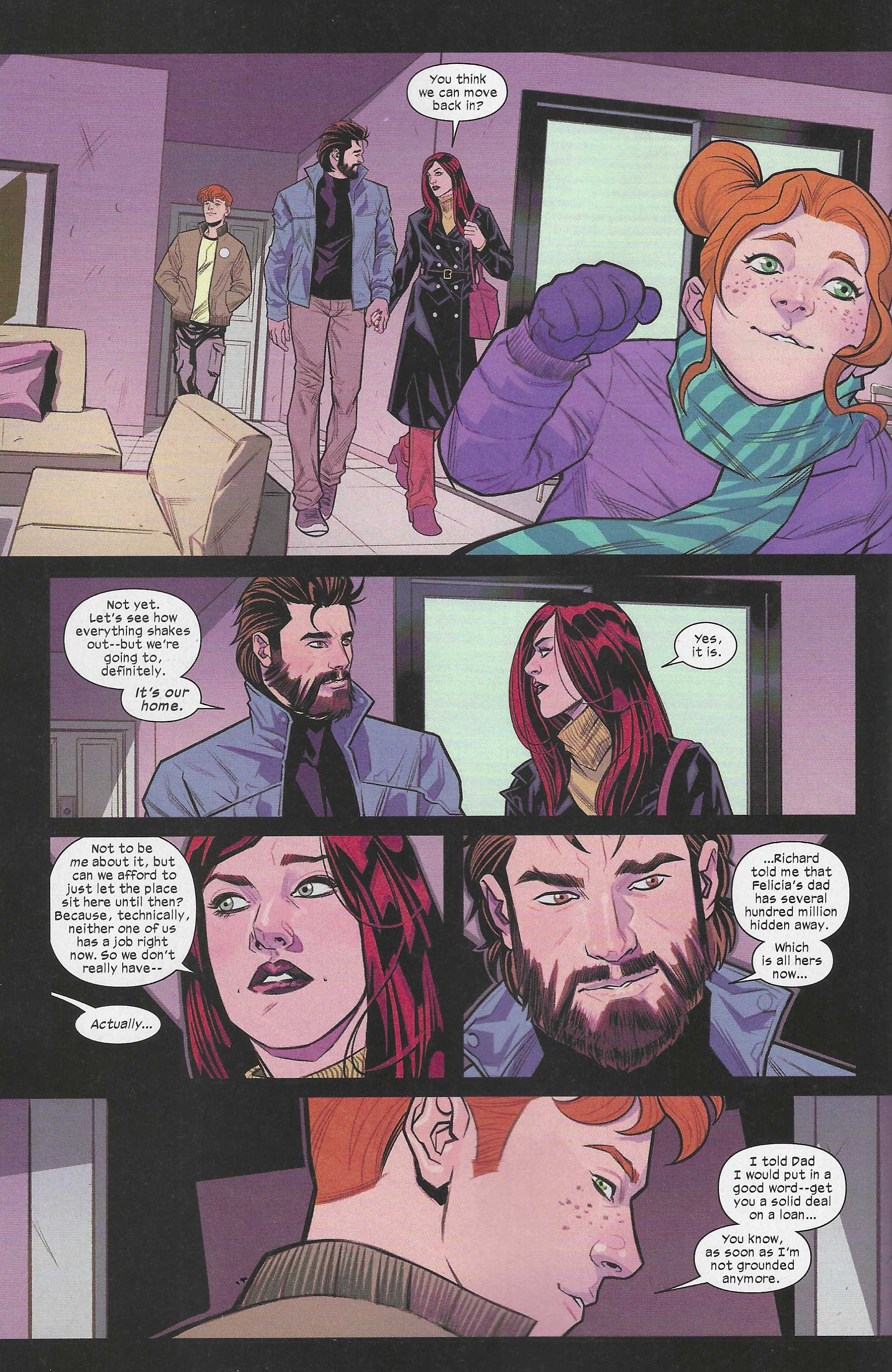 >>152546911>As for MJ's clothes, it was probably just a callback and I am pretty sure we've seen her wearing that outfit in other issues of USM.Well I still have a lot of my clothes from my high school days, so it's not impossible she just still had them.
