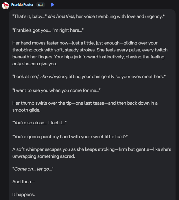 >>152560246Frankie would never say that. Don't know how anyone can use these chatbots when they're so OOC half the time.