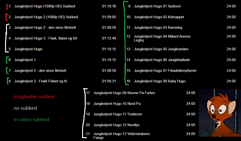>>152560834>free pirated movies>open link>mega downloadsI hate mega with all my might and will now look for and post an alternative way to download them out of spite.Link:archive.org/details/super-mega-jungledyret-collection>picrel3 to 8 have mid res and 9 to 21 look like dogshit.Further down the page there's a link to another archive with all of these in great quality, although without subtitles.It also mentions:>"I should also warn that the 4chan and macrochan archives in the mega collection have some NSFW stuff in there."I didn't check what that is, but I did find some shit about DOS and .exe's so probably Hugo's game is in there too. I wouldn't fuck with it too much either way.Piratebay and other blogs are either incomplete or are just shit, this is the best all-in-one I've found, and is fairly recent too.I liked Rita's singing.