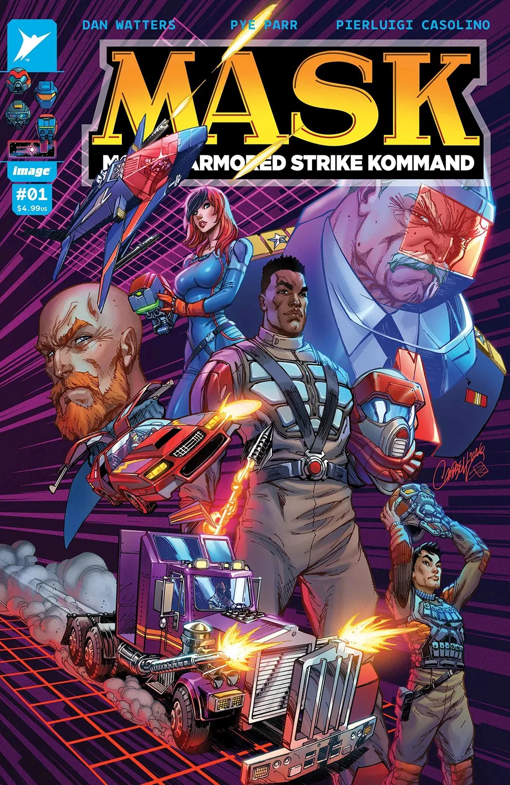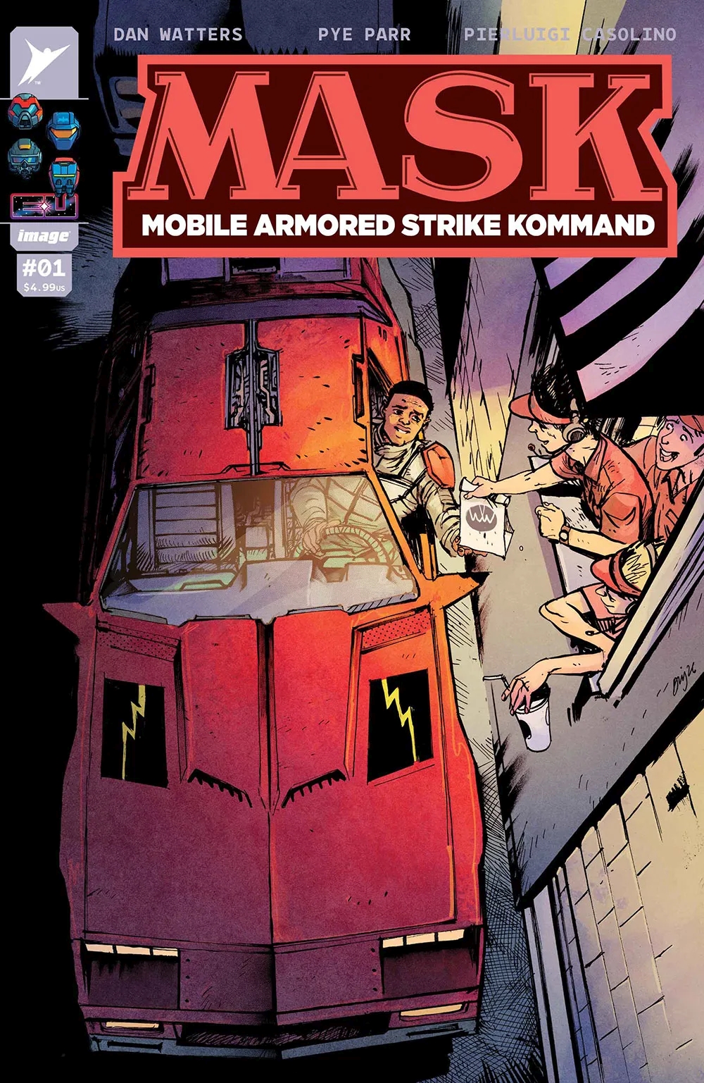 >At the height of the toy domination of 1980s pop culture, Kenner introduced M.A.S.K., an action line featuring fast cars, powered masks, high-tech weapons and flashy spycraft.>While not as ubiquitous as Transformers or G.I. Joe, the line nonetheless got a Saturday morning cartoon series, comics books and a video game.>Now, after mostly surviving as an occasional comic and occasional movie development announcement, M.A.S.K. is back in its most high-profile way thanks for Invincible co-creator Robert Kirkman and his Skybound multimedia production banner.>Skybound revealed a new ongoing comic from writer Dan Watters (Batman: Dark Patterns), artist Pye Parr (New Gods), colorist Pierluigi Casolino and letterer Rus Wooton. The announcement was made Friday by Kirkman at ComicsPro, as part of the annual meeting of comic book industry retailers, publishers, and distributors held in Glendale, Calif. The first issue is due to hit comic book shelves via Image Comics June 3.>In recent years, Skybound has relaunched both Transformers and G.I. Joe, polishing the media properties into best selling titles. Transformers, especially, has become a book that outsells many of the comics put out by DC and Marvel, and won an Eisner Award. The books are part of what is billed as the Energon Universe. Watters is already part of that universe having written Destro, a mini-series centered on the G.I. Joe villain put out by Skybound.>M.A.S.K. made ample use of acronyms. The name stood for Mobile Armored Strike Kommand and the security organization squared off against V.E.N.O.M., which stood for Vicious Evil Network Of Mayhem.