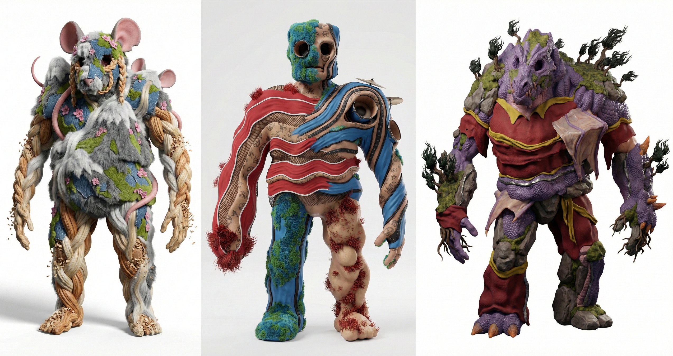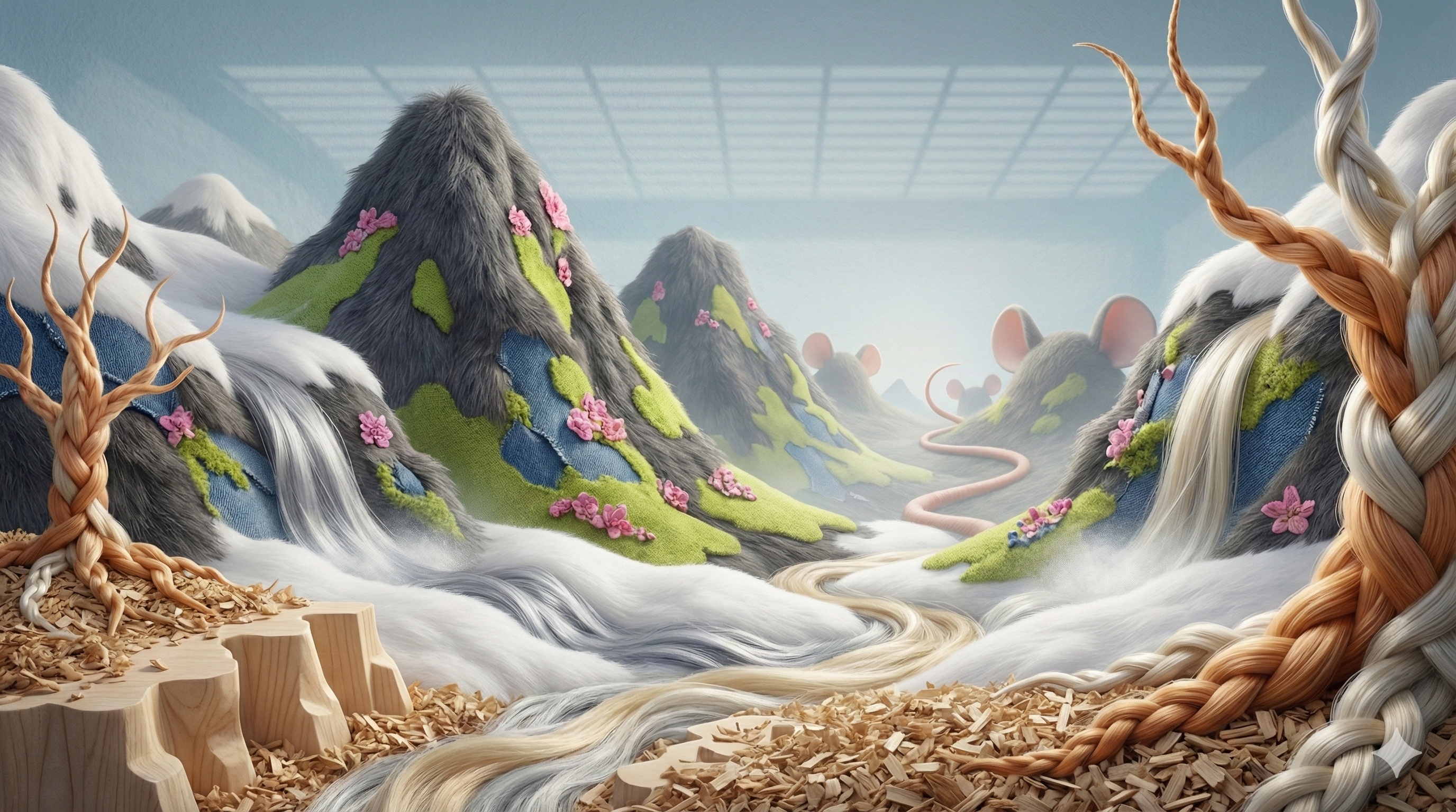 >>152568441https://pastebin.com/MEt6P6Q3very little effort from meI have a chatGPT session where it knows what's up in regards to formatting, it's already worked through all the kinksI just have to show it the image, explain what I think the building blocks/materials should be and how/where they should be used, usually gives me a prompt which is at least 90% thereso I'd say just show this prompt to an LLM, and say rewrite using this format for this image, here's what I think the materials should be etcthis is what I typed for that one"1. white fur (a given) 2. the 3 mouse characters' hair, so platinum blonde/strawberry blonde braids, and the grey/silver hair in the centre. 3. dark grey fur, this should cover a landscape feature, while using the lime-green fabric(top), denim fabric(bottoms) and pink fabric(gloves) as accents/foliage around it. 4.wood chippings at bottom 5. painted wall at back (should be the sky) 6. light wood texture (house, back-left) 7. grate at top 8. assorted mouse parts (probably only ears/tail)"
