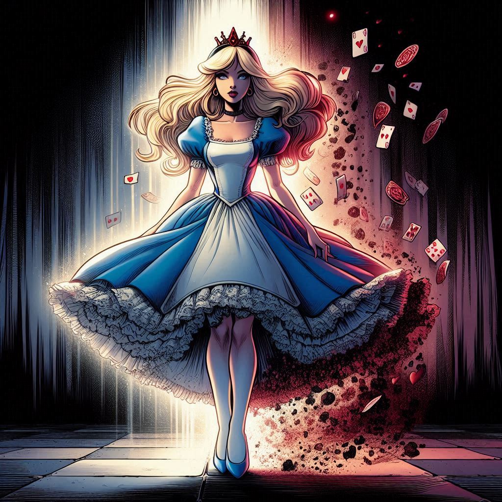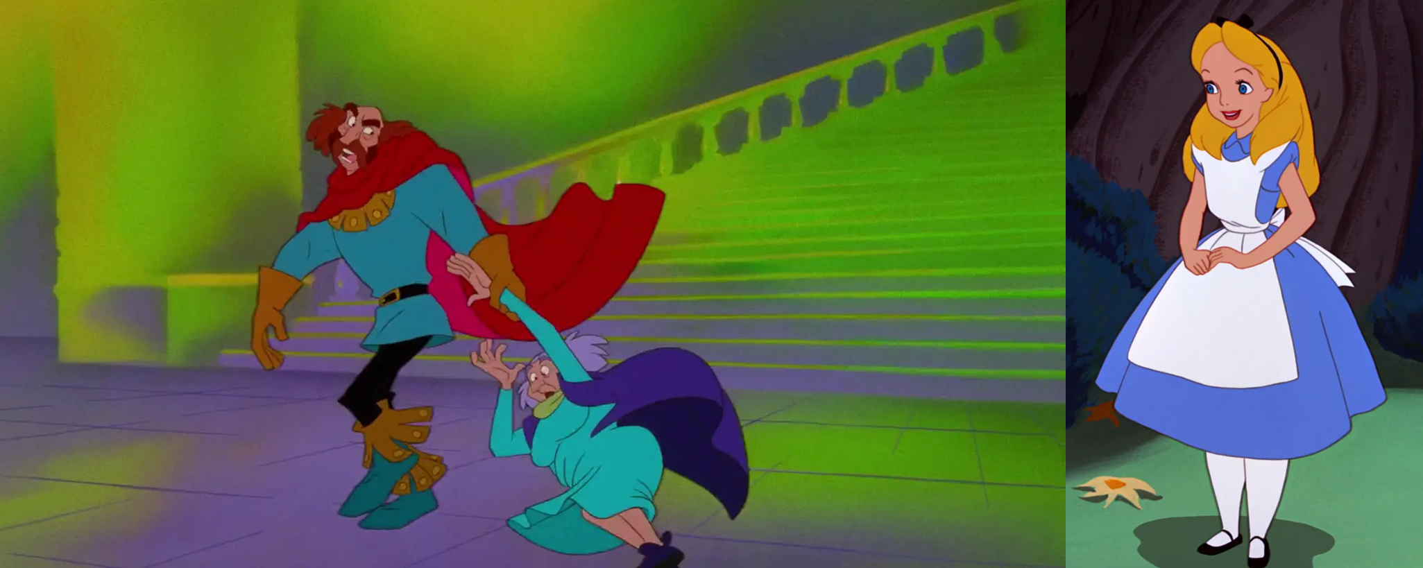>>152599956It's not exactly that screenshot, it's basically the scene of transformation in that part of the scene ("No More Mr Nice Guy"). Similar to how somebody used Wallace y Gromit to reproduce a scene from "The Fox and the Hound" some time ago. Alice in her usual clothes in the same position as the hag when she's about to be transformed. Then it's Alice's head on the adult body with black dress like in these screenshots.