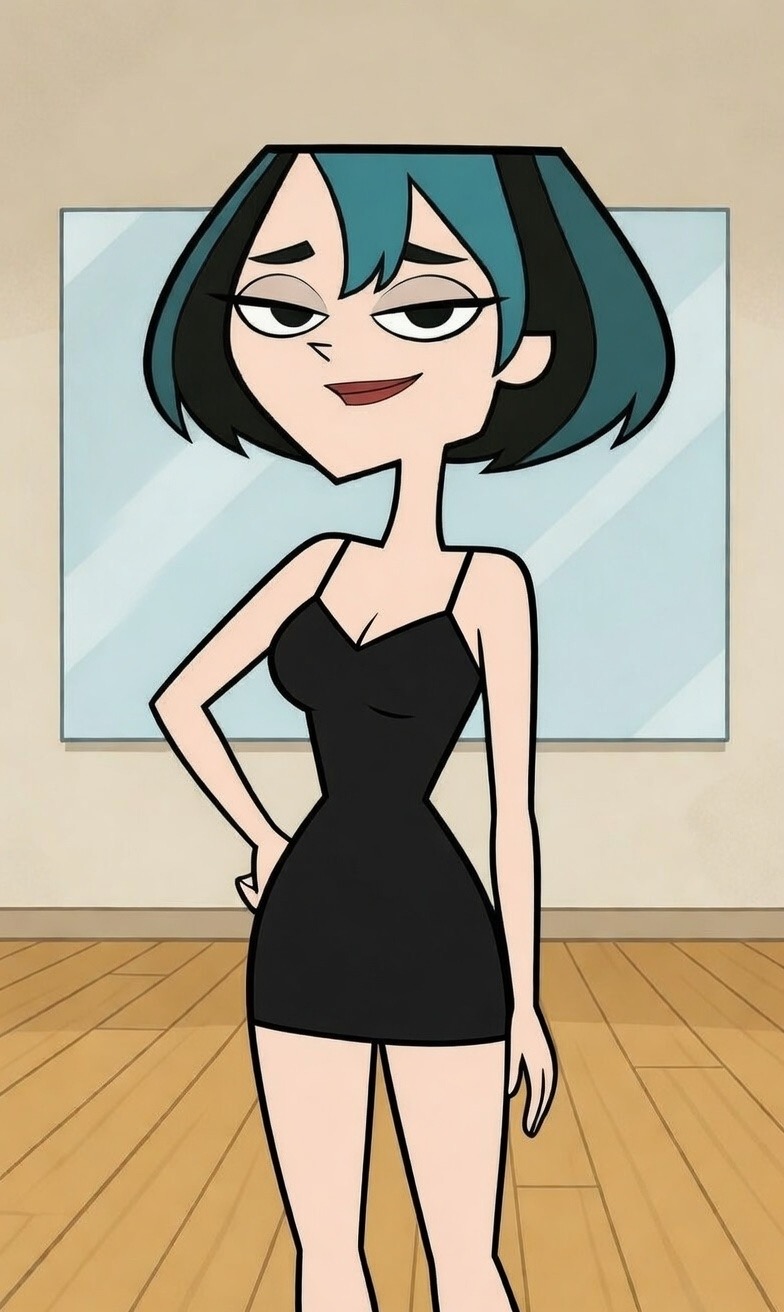 Gwen in a little black dress