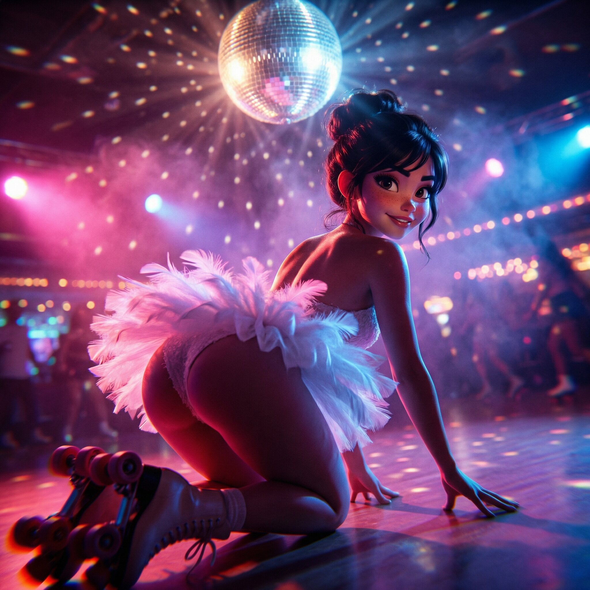 >>152600090Thanks! face reference from bing / dalle3, uploaded to NBP then roller disco prompt.