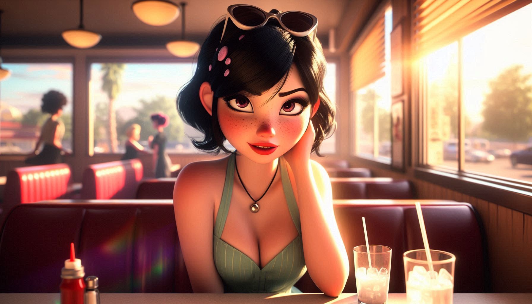 Thought I'd recreate this scene from Mitchells vs the Machines with a different characterSurprisingly hard to stop this image going too lewd, Judging by the blurs it was more likely to block images she was fully covered