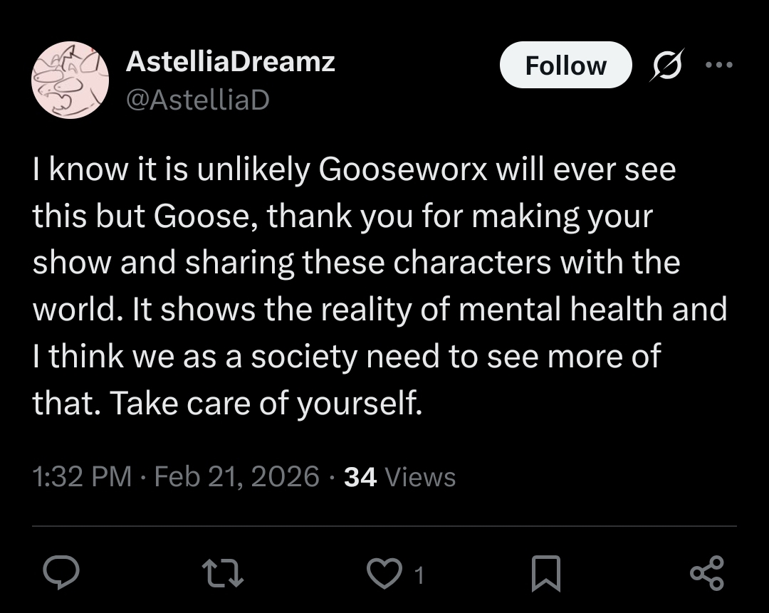 Goose got tens of millions of dollars from tadc despite being a terrible writer and mediocre musician and animator. If she can't handle a little bit of criticism she should just stay off the internet.