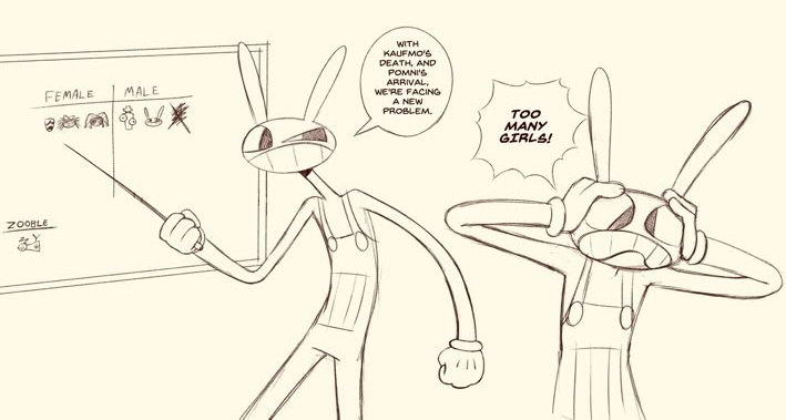 >>152578573>>zoomies push creator to suicide because she dared to write a story with a straight couple as the 2 main charactersi dont think pomni and jax are a couple. she seemed to have more interest in gummigoo. the main character thing is a surprise to me though.