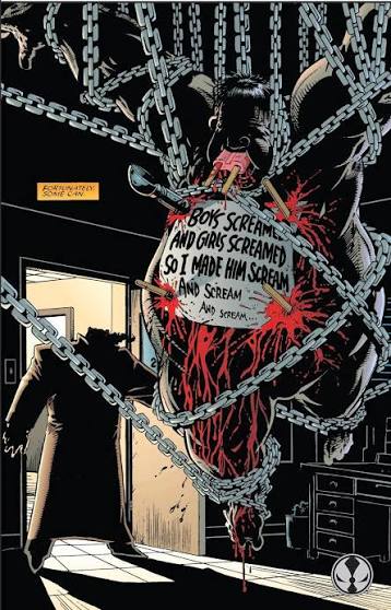 Spawn isn't as edgy visually as it is morally though it's both in spadeshis first major villain is a fucking child rape murderer covered up by a corrupt senator and then he goes on to kill satan