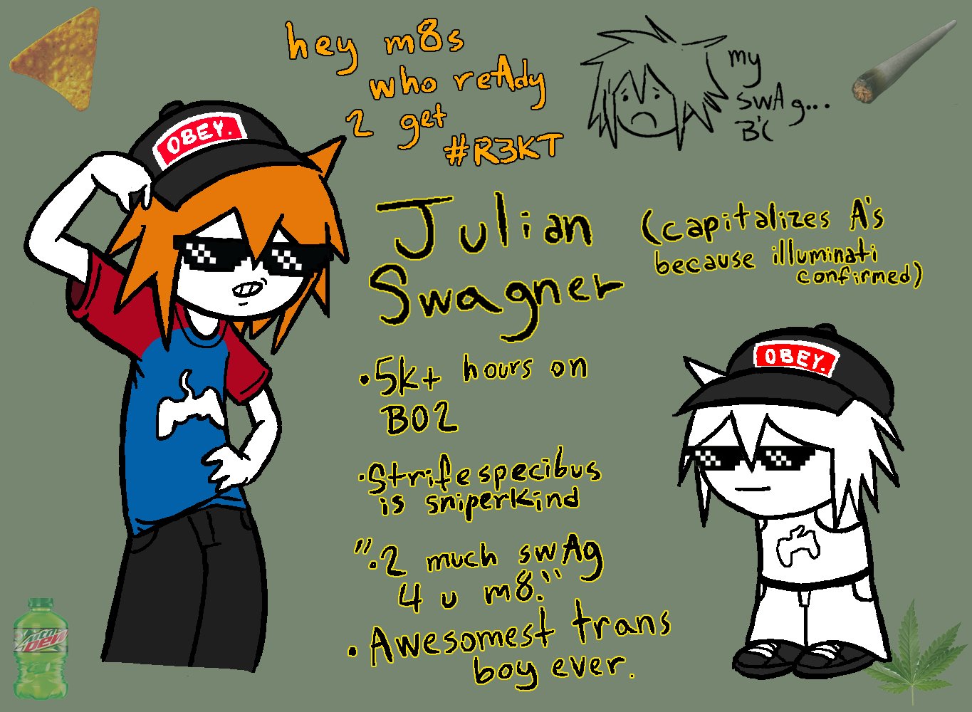 >>152591770for 4/20 I'll make a tierlist of all the different kinds of ways each character is affected by weeddirk's mood would be improved, and I feel like jake's stupid ass would get paranoia